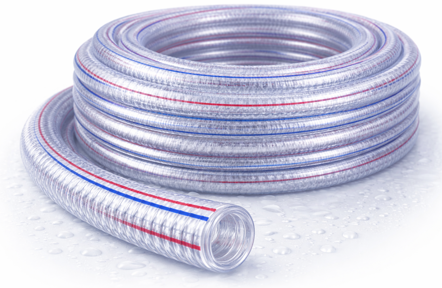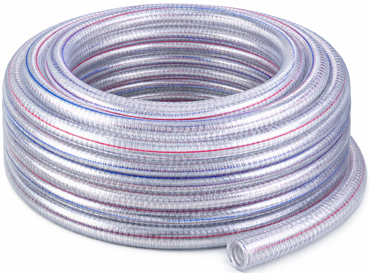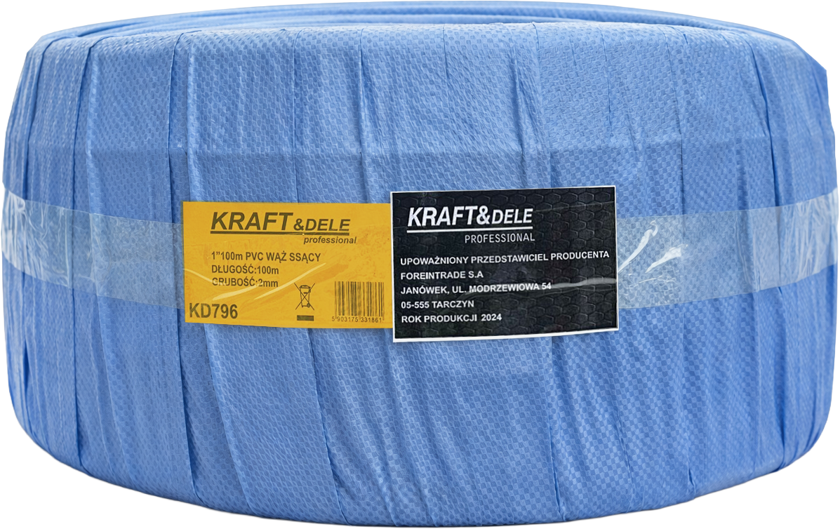 KD796 to wąż ssawno-tłoczny wykonany z elastycznego PCV, wzmocniony spiralą z twardego tworzywa, przeznaczony do transportu wody, powietrza oraz lekkich chemikaliów. Dostępny w zwoju 100 metrów, co pozwala na pokrycie dużych odległości bez konieczności łączenia odcinków.