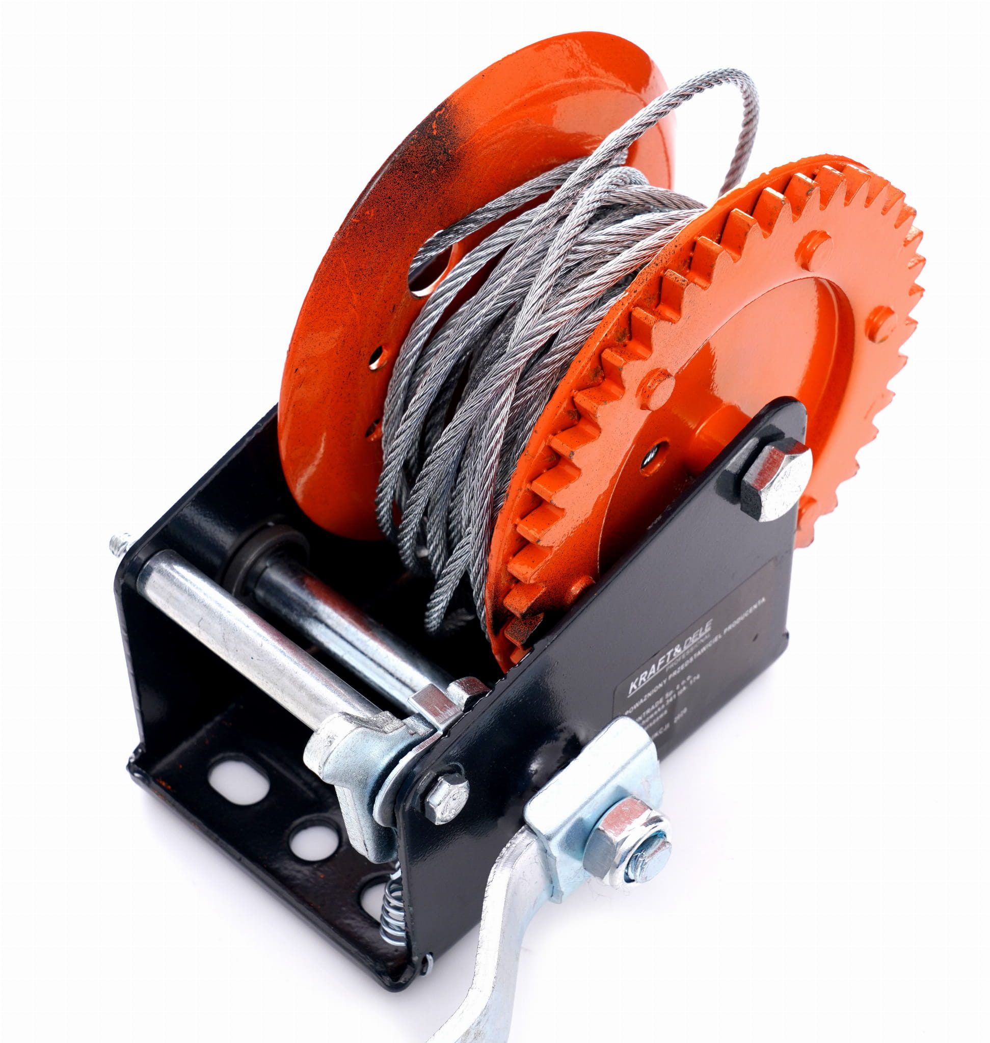 Napęd ręczny eliminuje zależność od zasilania elektrycznego, co jest istotne w terenie lub miejscach bez dostępu do prądu. Ergonomiczny uchwyt korby redukuje zmęczenie przy dłuższej pracy z obciążeniem.