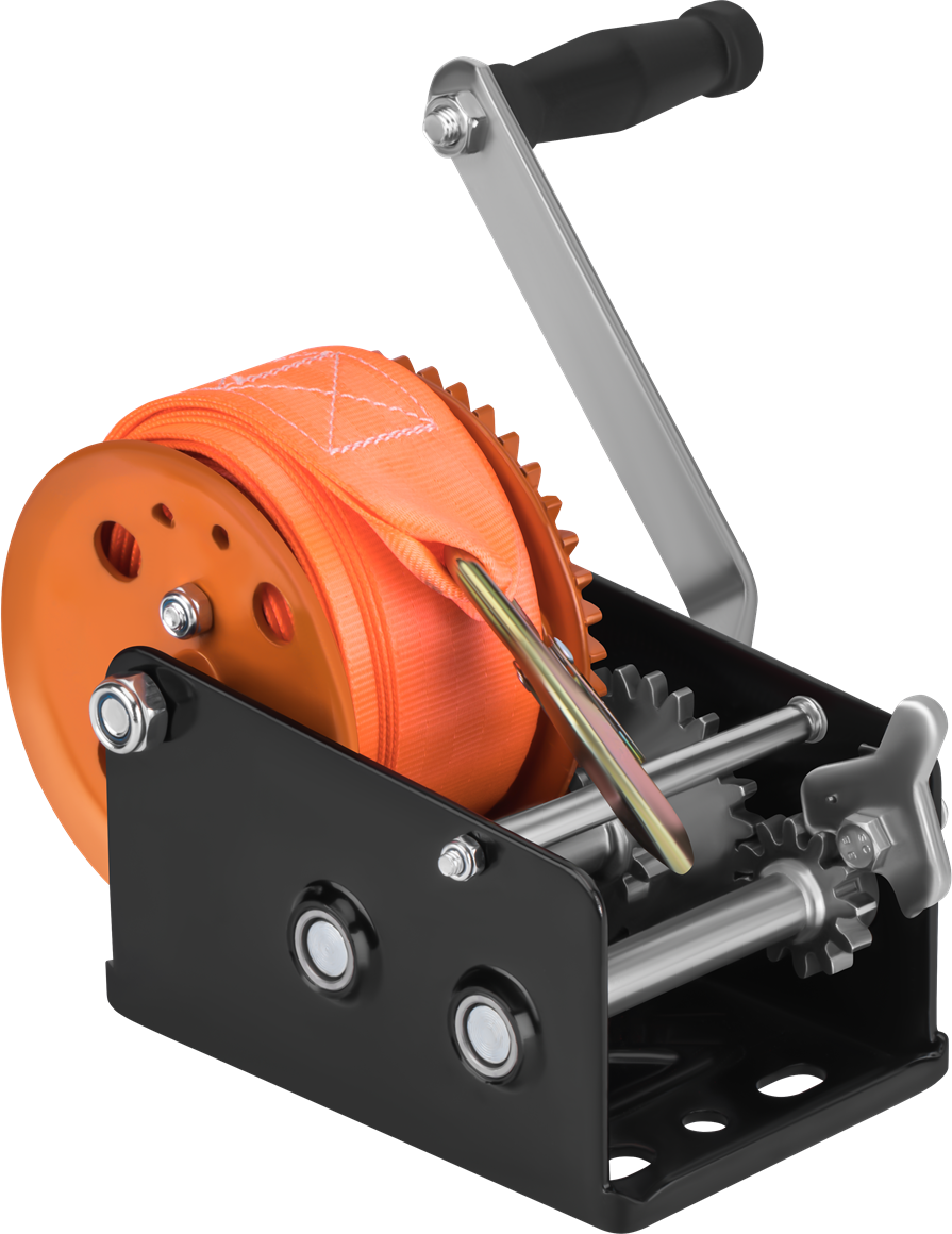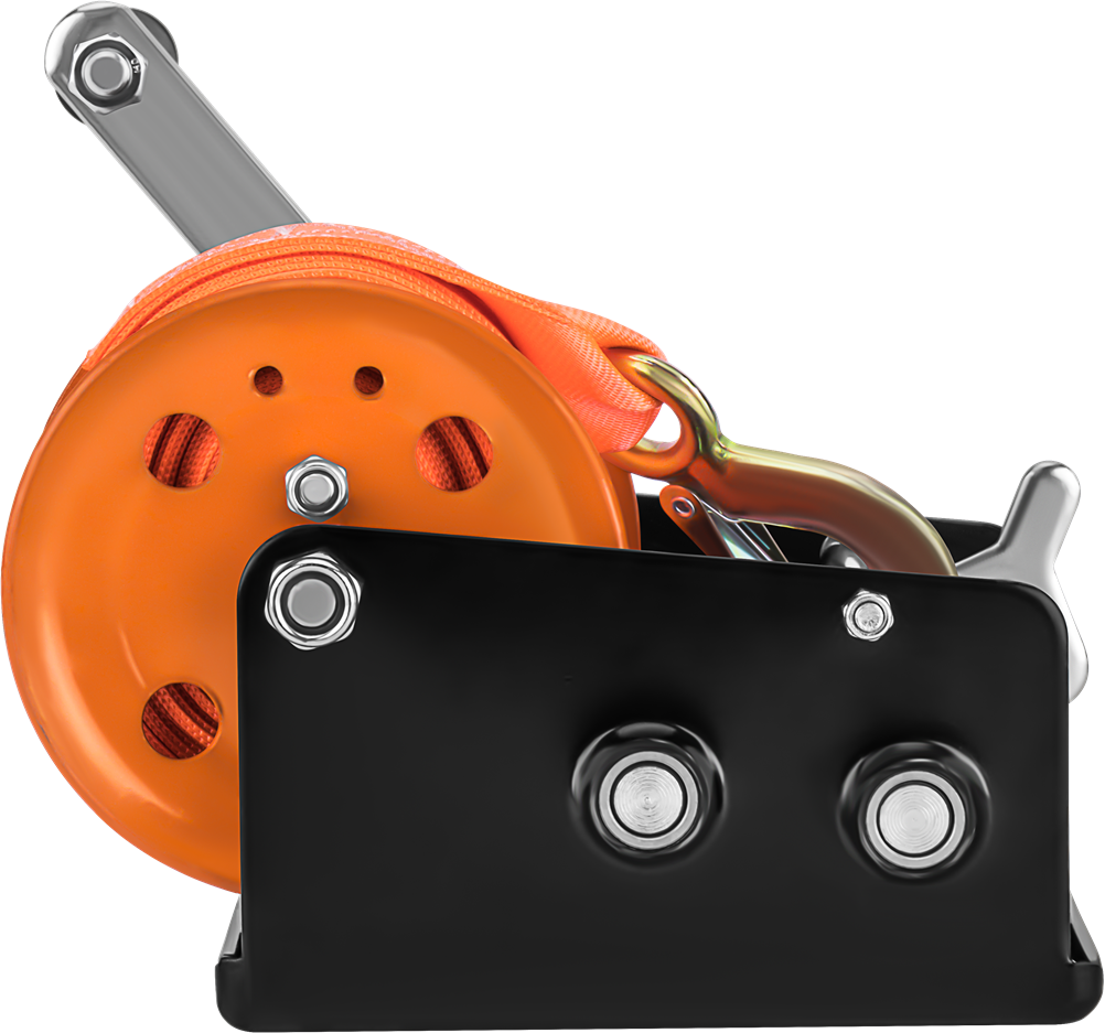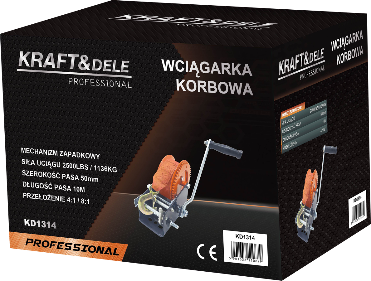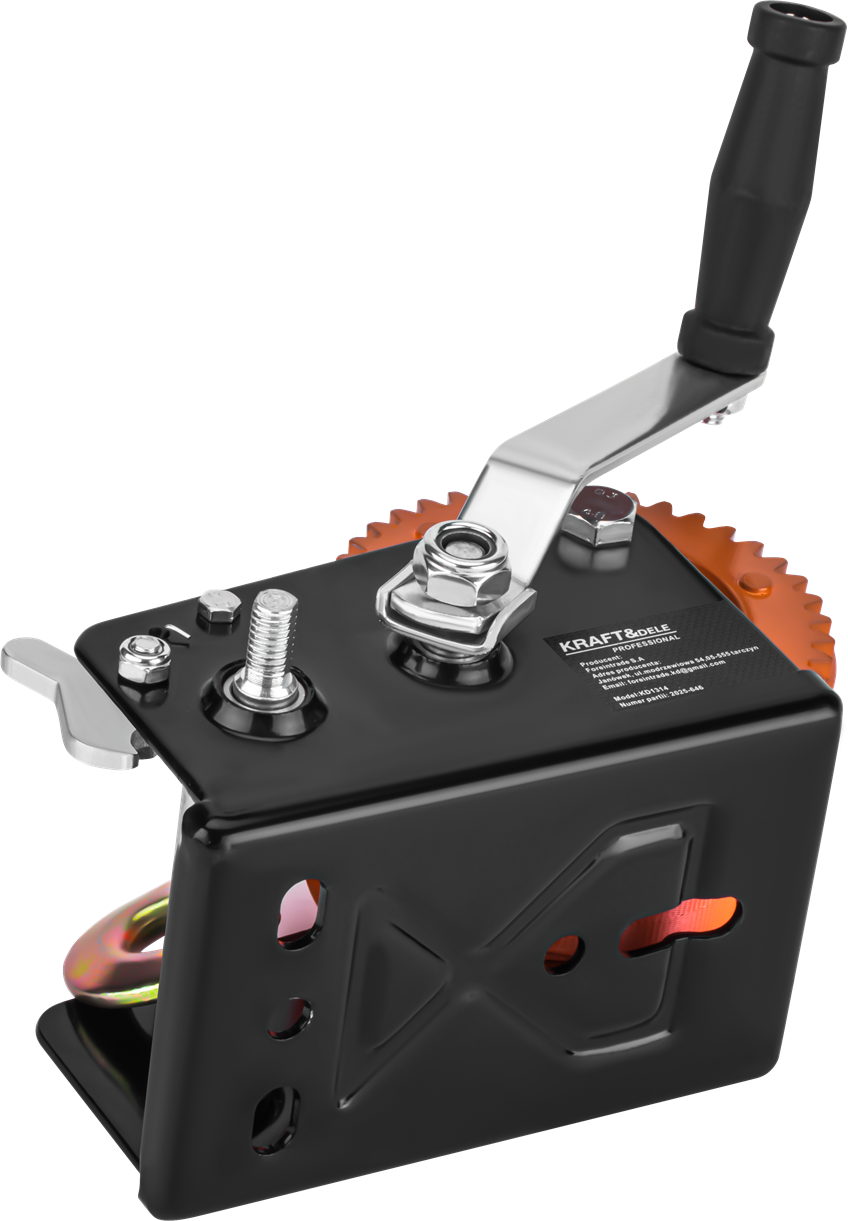 KD1314 to ręczna wciągarka pasowa przeznaczona do podnoszenia, wciągania i opuszczania ładunków o masie do 1134 kg. Urządzenie pracuje w oparciu o mechanizm zapadkowy z przekładnią stalową, co zapewnia kontrolę nad ruchem ładunku bez ryzyka samoczynnego luzowania pasa.