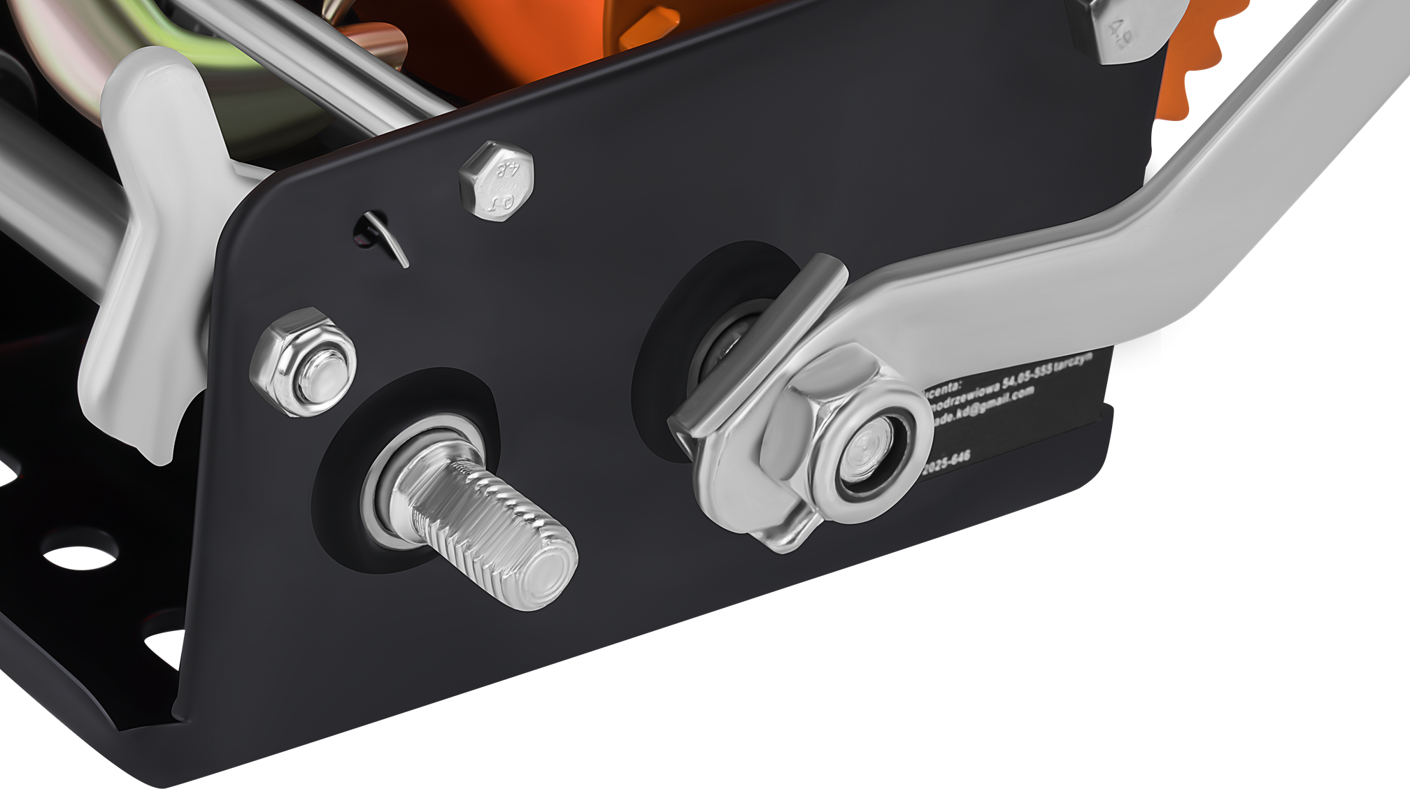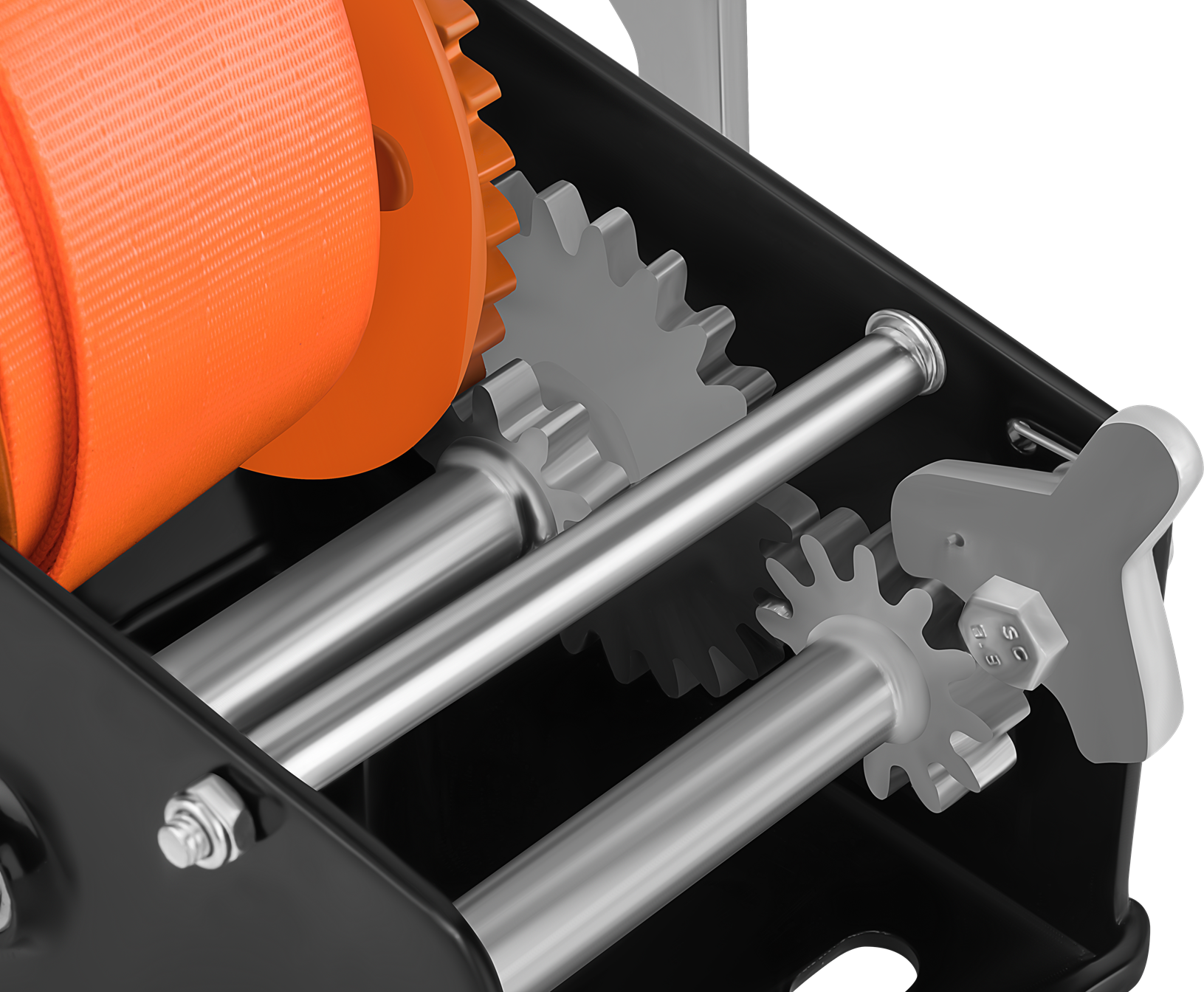 Zapadka blokuje pas po każdym ruchu korby, uniemożliwiając cofnięcie się ładunku. Dzięki temu operator może przerwać pracę w dowolnym momencie bez ryzyka niekontrolowanego opuszczenia się ciężaru.