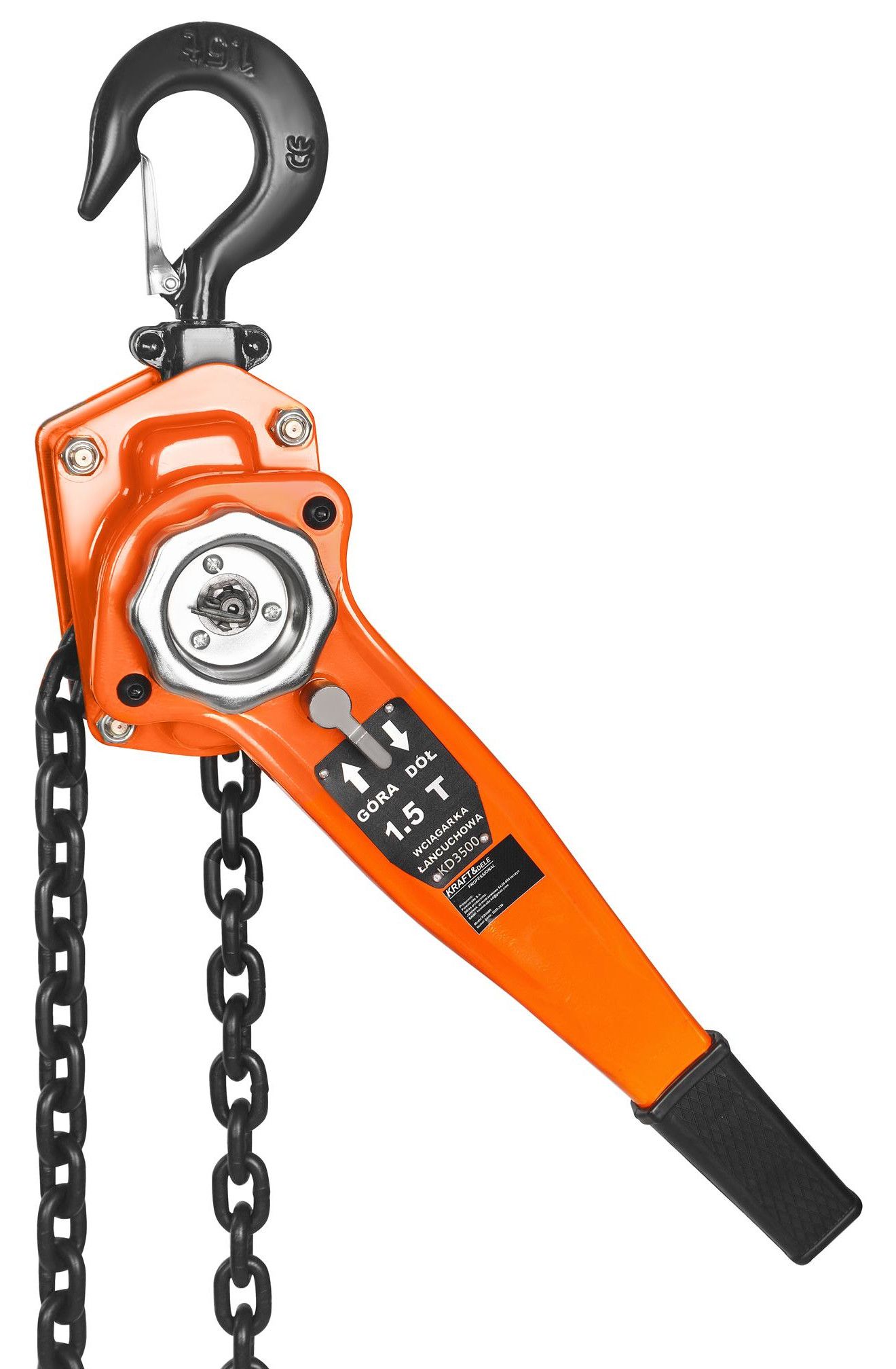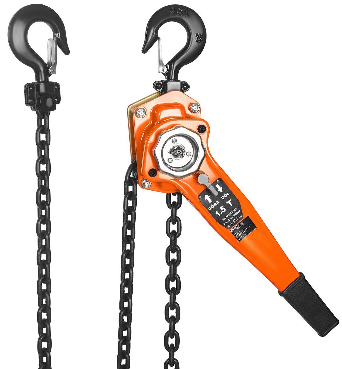 WCIĄGARKA ŁAŃCUCHOWA Z GRZECHOTKĄ 1,5T 3M KD3500 to sprawdzona wciągarka łańcuchowa z grzechotką, która łączy kompaktową konstrukcję z udźwigiem 1500 kg i łańcuchem 3 m. Jeśli szukasz narzędzia do bezpiecznego podnoszenia i przemieszczania ładunków w warsztacie, magazynie lub na budowie, model KD3500 będzie praktycznym wyborem.