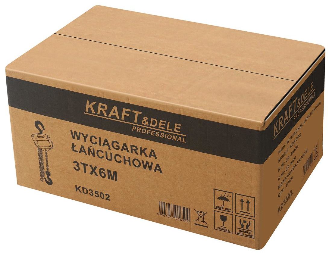 Wciągarka ręczna 3T 6M KD3502 / KD3502 / KRAFT&DELE to solidna wyciągarka łańcuchowa do zadań, w których liczy się udźwig, kontrola pracy i trwałość. Jeśli szukasz sprawdzonego rozwiązania do warsztatu, magazynu lub na budowę, model KRAFT&DELE KD3502 będzie praktycznym wyborem.