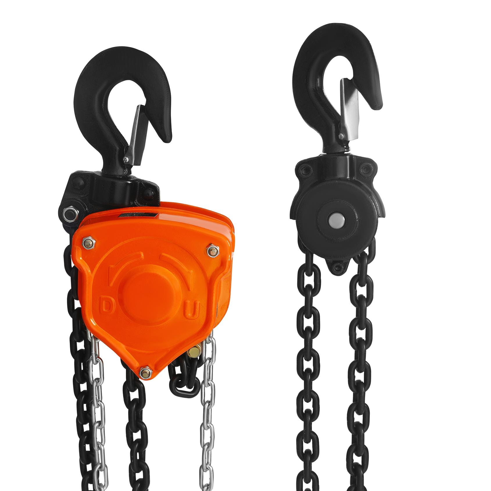 Łańcuch roboczy o długości 6 metrów umożliwia podnoszenie ładunków na znaczną wysokość — przydatne przy montażu elementów na antresolach, regałach wysokiego składowania lub przy pracach serwisowych pod pojazdem uniesionym na podnośniku. Średnica ogniwa 8 mm odpowiada wymaganiom dla tej klasy udźwigu.