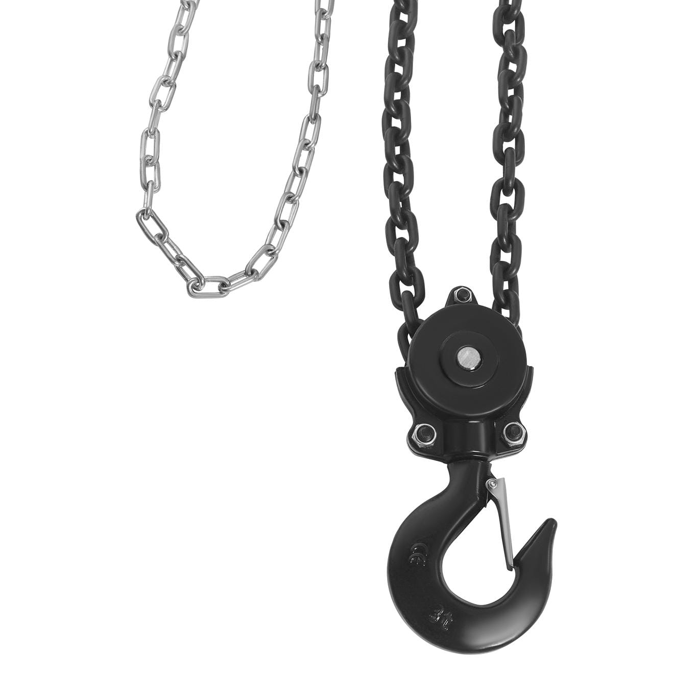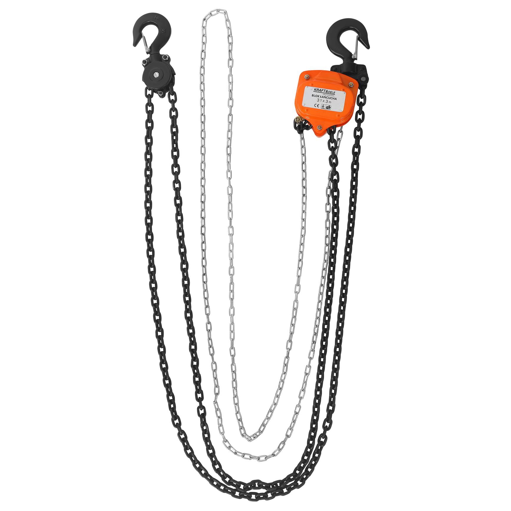 Łańcuch o średnicy 8 mm wykonany ze stali zapewnia odpowiednią wytrzymałość na rozciąganie przy zadeklarowanym udźwigu. Długość 3 metrów określa maksymalny skok roboczy — odległość między hakiem górnym a hakiem ładunkowym w pozycji najniższej.