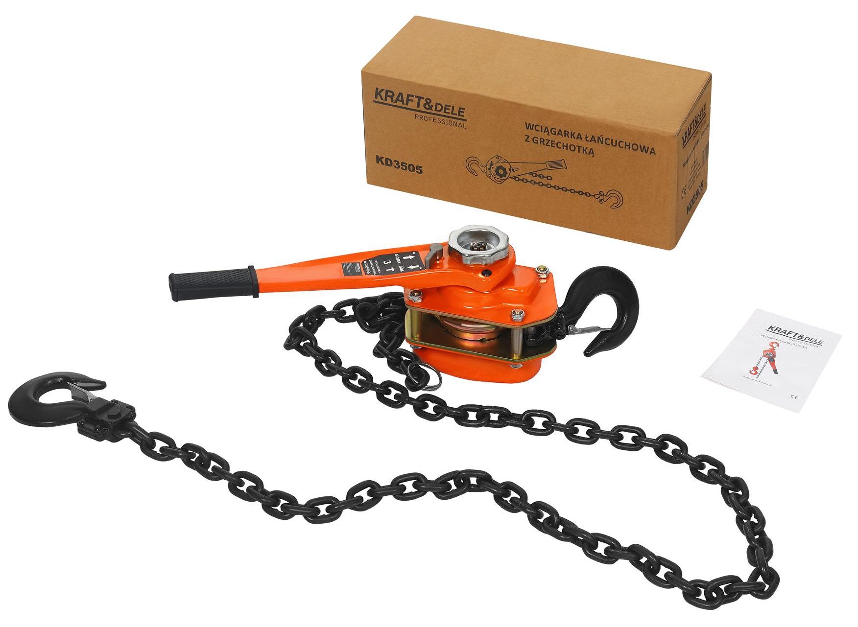 Wciągarka ręczna z grzechotką 3m 3t KD3505 / KRAFT&DELE to wyciągarka łańcuchowa do profesjonalnych zastosowań, która łączy wysoki udźwig z prostą, intuicyjną obsługą. Jeśli szukasz narzędzia do bezpiecznego podnoszenia i opuszczania ciężkich elementów w warsztacie, hali lub na budowie, model KD3505 będzie praktycznym wyborem na co dzień.