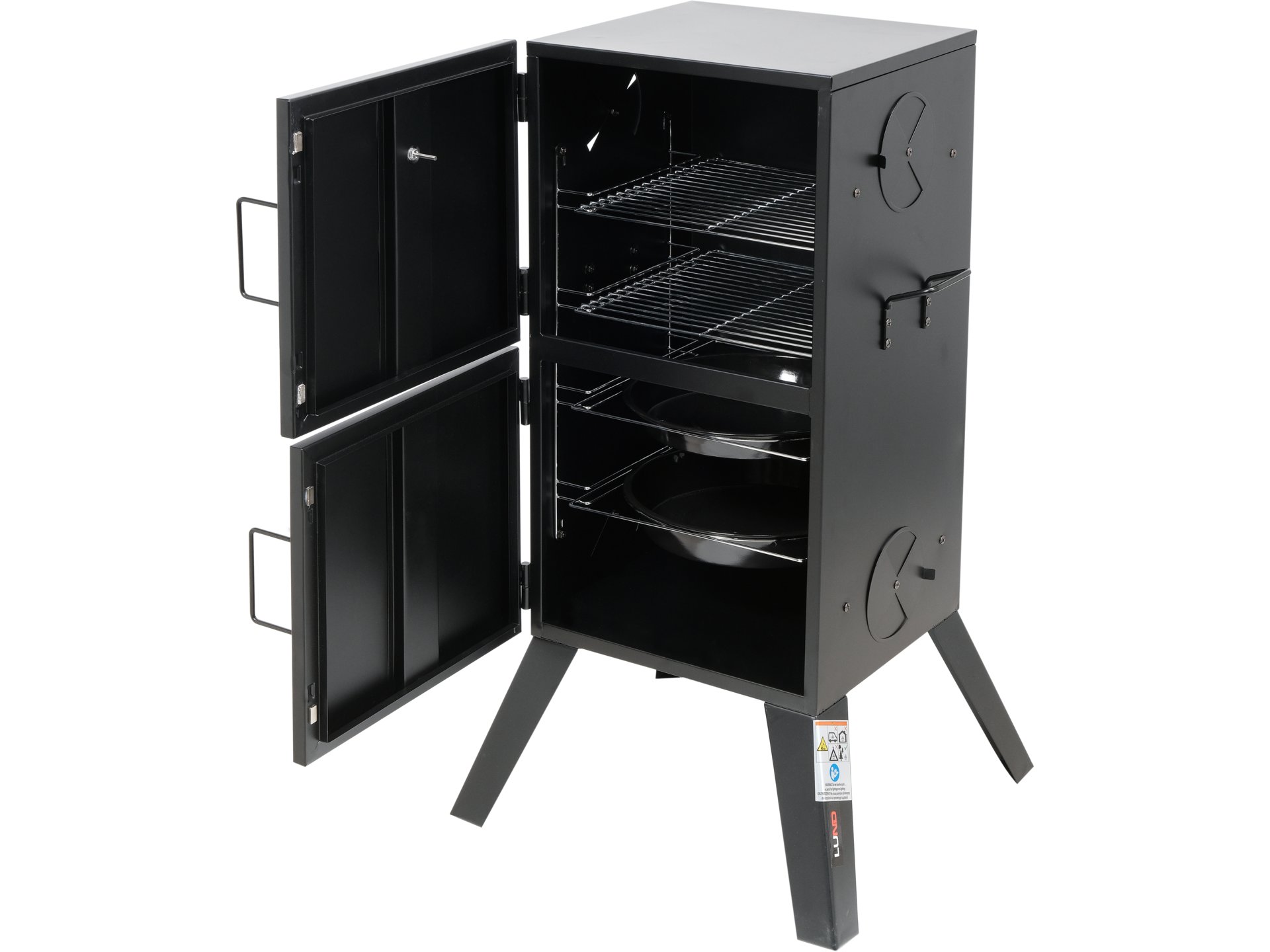 Wędzarnia Lund 99916 składa się z dwóch części: dolnej z paleniskiem i górnej komory wędzarniczej. Wyposażona jest w dwa ruszty oraz dwie misy pokryte porcelanową emalią, co gwarantuje trwałość i łatwość czyszczenia.