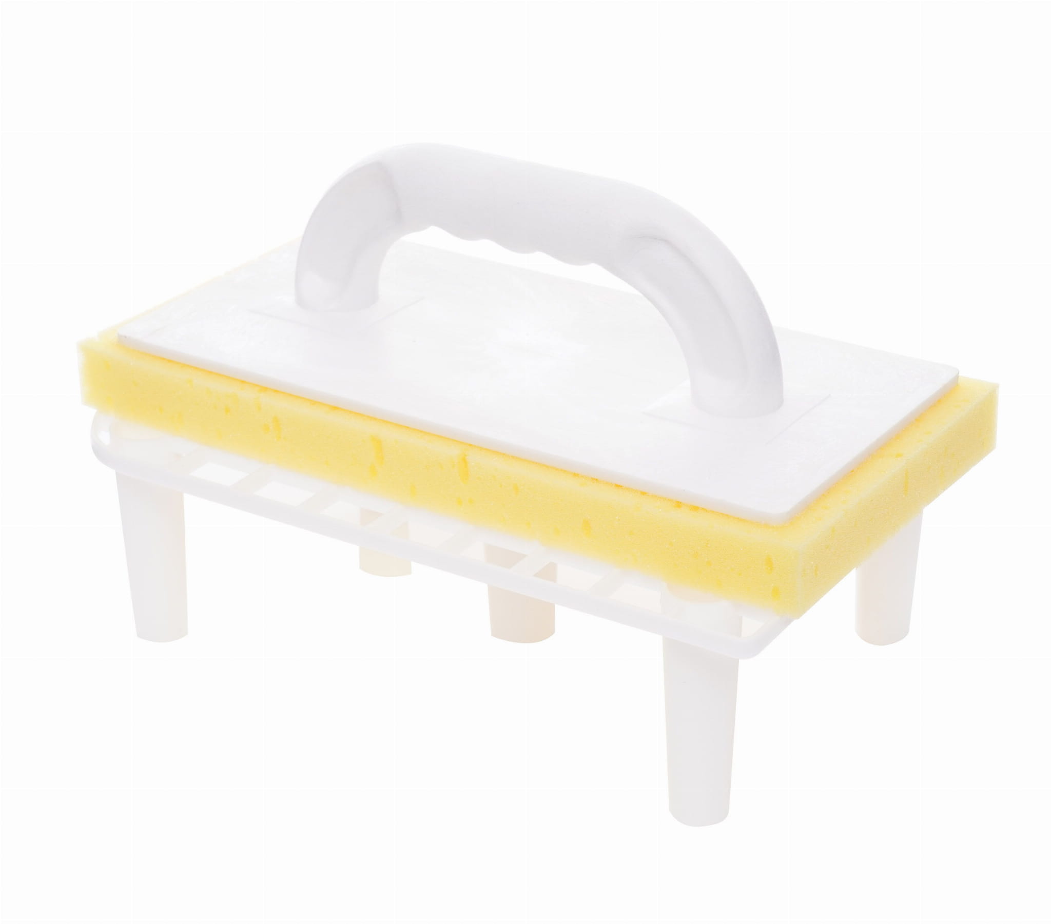 Paca dołączona do zestawu służy do zbierania pozostałości fugi z powierzchni płytek. Gąbka pochłania nadmiar zaprawy, a jej struktura pozwala na dokładne wyczyszczenie spoin i powierzchni bez zarysowań.