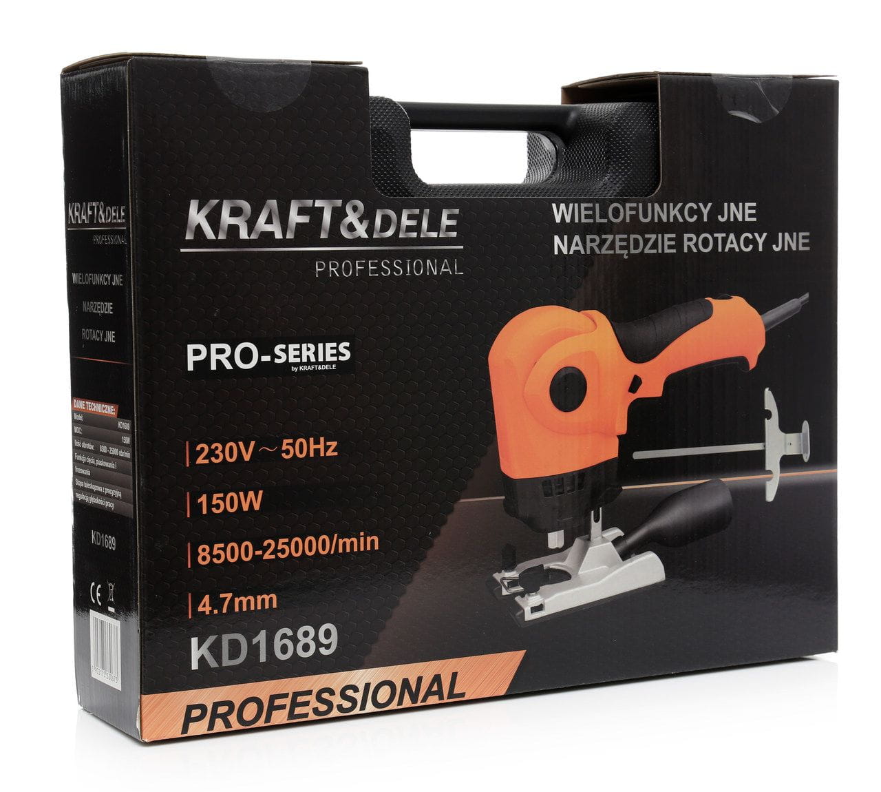 KD1689 to elektryczne narzędzie rotacyjne o mocy 150 W, przeznaczone do prac precyzyjnych w drewnie, tworzywach sztucznych i miękkich metalach. Obsługuje trzy tryby pracy — frezowanie, cięcie i piaskowanie — co pozwala zastąpić kilka osobnych narzędzi w warsztacie lub przy drobnych pracach remontowych.