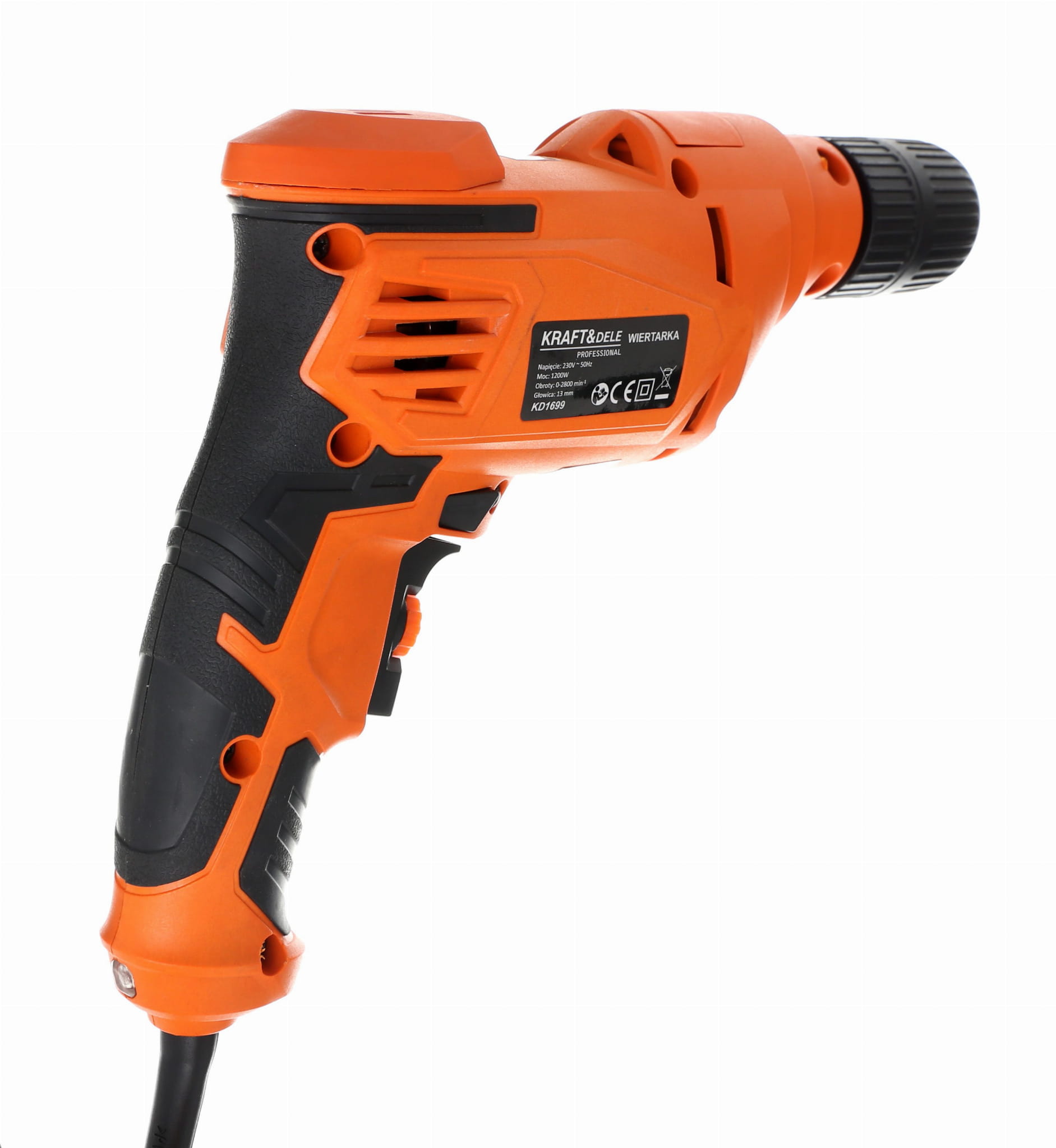 Sieciowa wiertarka elektryczna z regulacją prędkości obrotowej w zakresie 0–2880 obr./min, przeznaczona do wiercenia w drewnie, metalu, tworzywach sztucznych oraz materiałach budowlanych takich jak cegła i beton. Wyposażona w rewers umożliwiający wkręcanie i wykręcanie elementów złącznych.