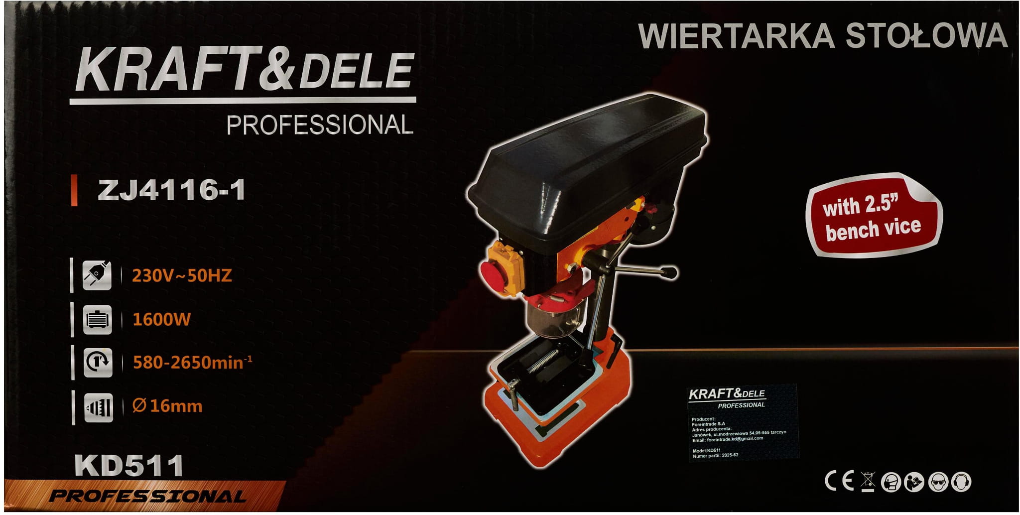 KD511 to wiertarka stołowa z silnikiem o mocy 1600W, przeznaczona do precyzyjnego wiercenia otworów w drewnie, metalu i tworzywach sztucznych. Stałe mocowanie do stołu warsztatowego zapewnia powtarzalność i dokładność wykonywanych otworów, niedostępną przy wiertarkach ręcznych.