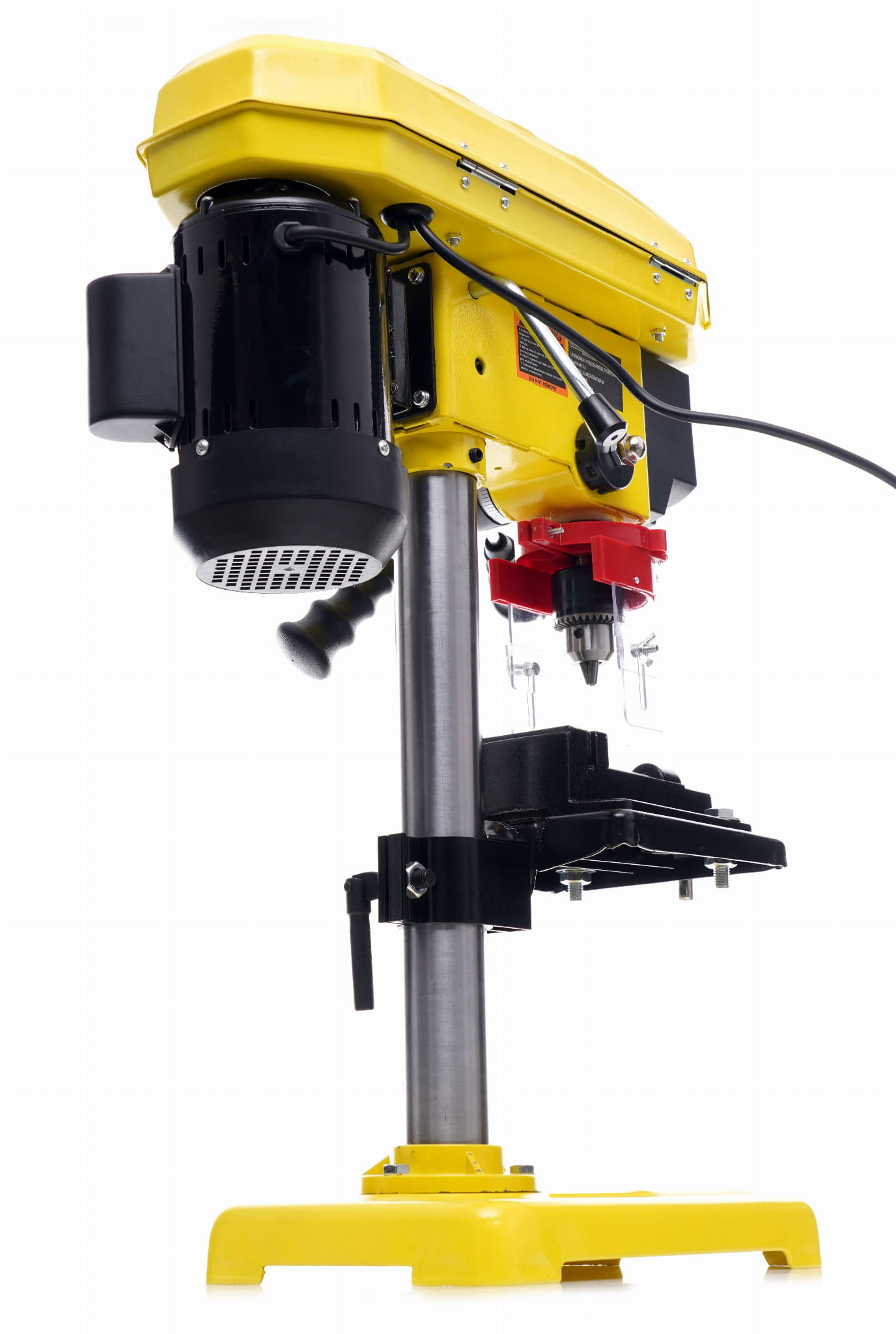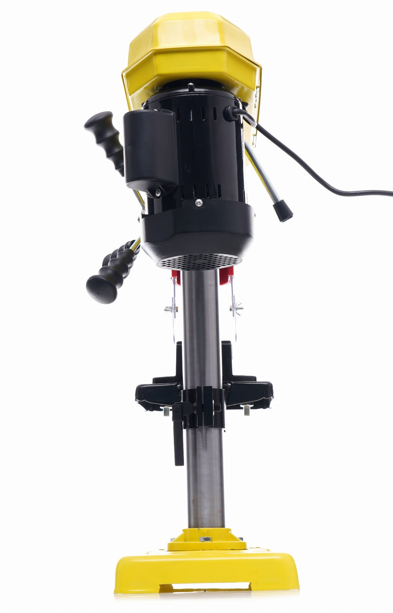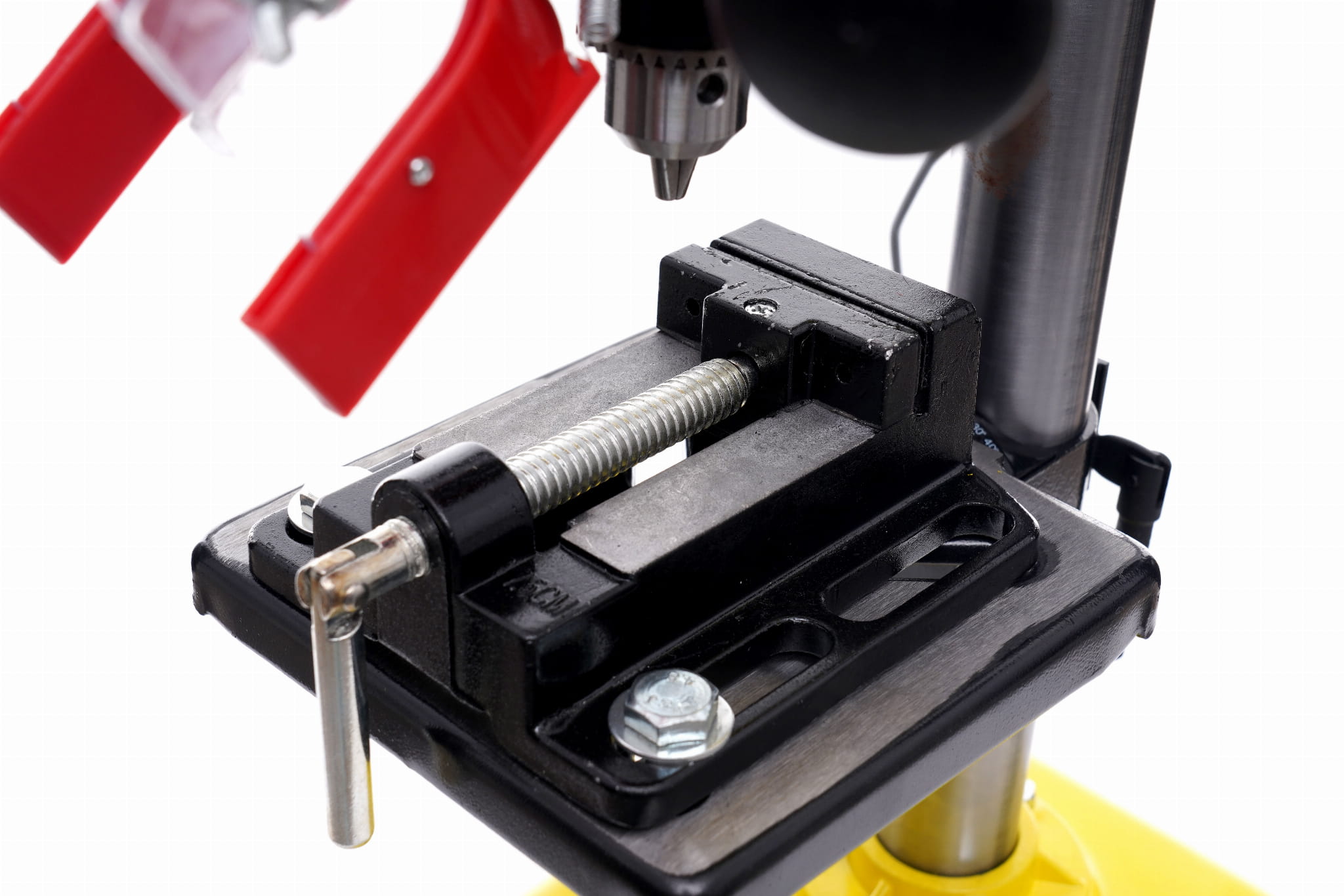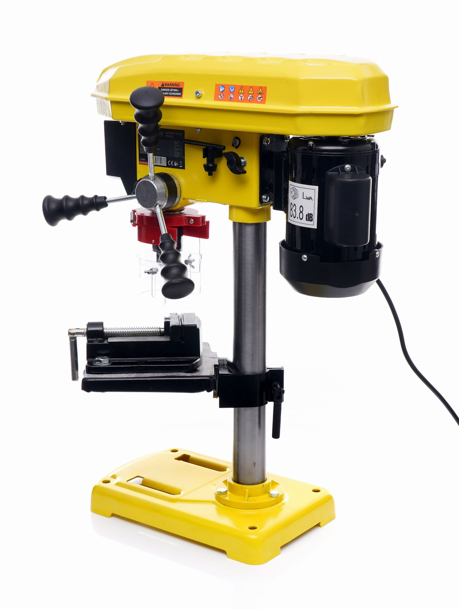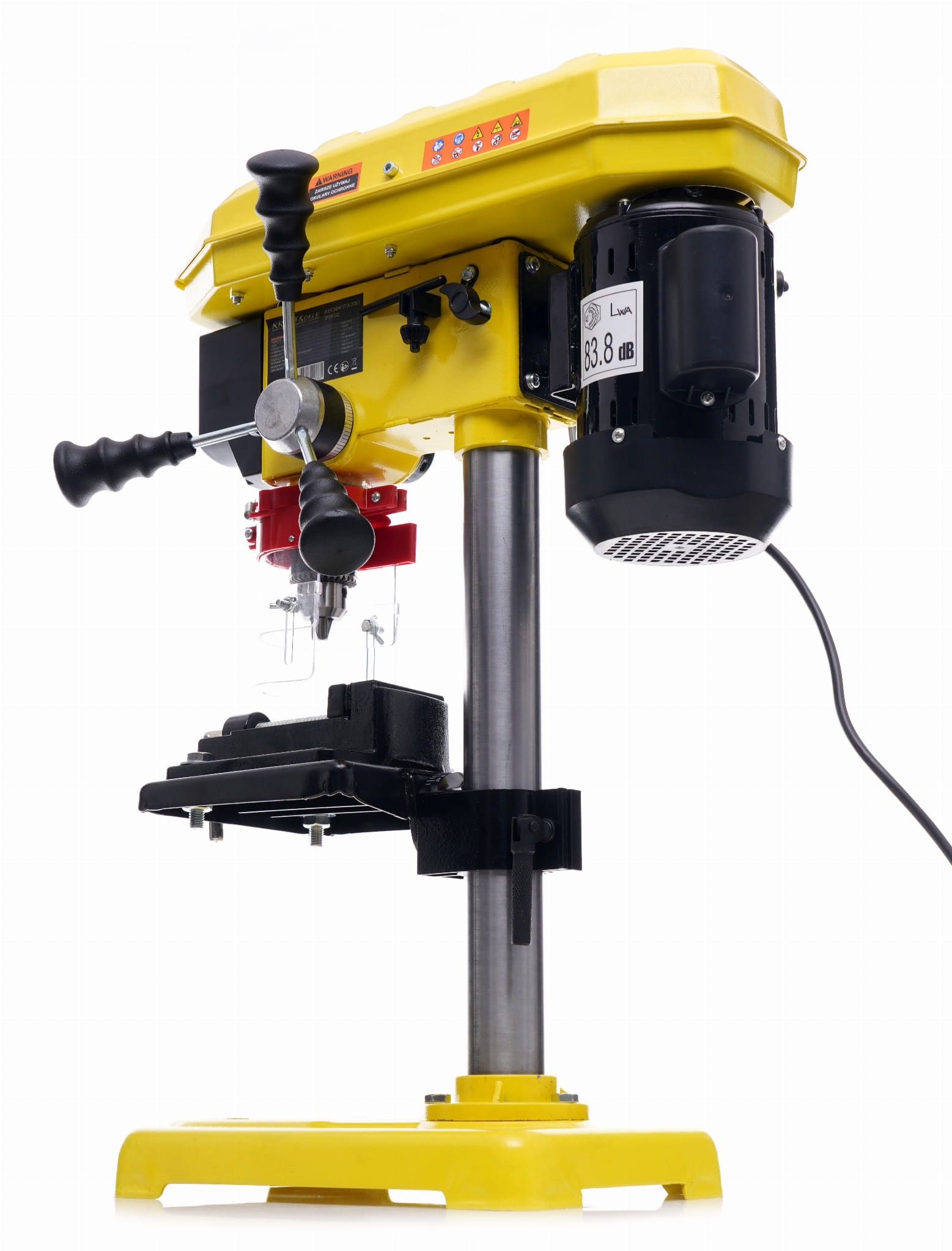 Stół o wymiarach 168 × 168 mm można ustawiać na różnych wysokościach wzdłuż kolumny o średnicy 46 mm. Umożliwia to wiercenie elementów o różnej grubości bez konieczności zmiany ustawień ogranicznika głębokości. Stabilna podstawa 315 × 200 mm ogranicza drgania podczas pracy.