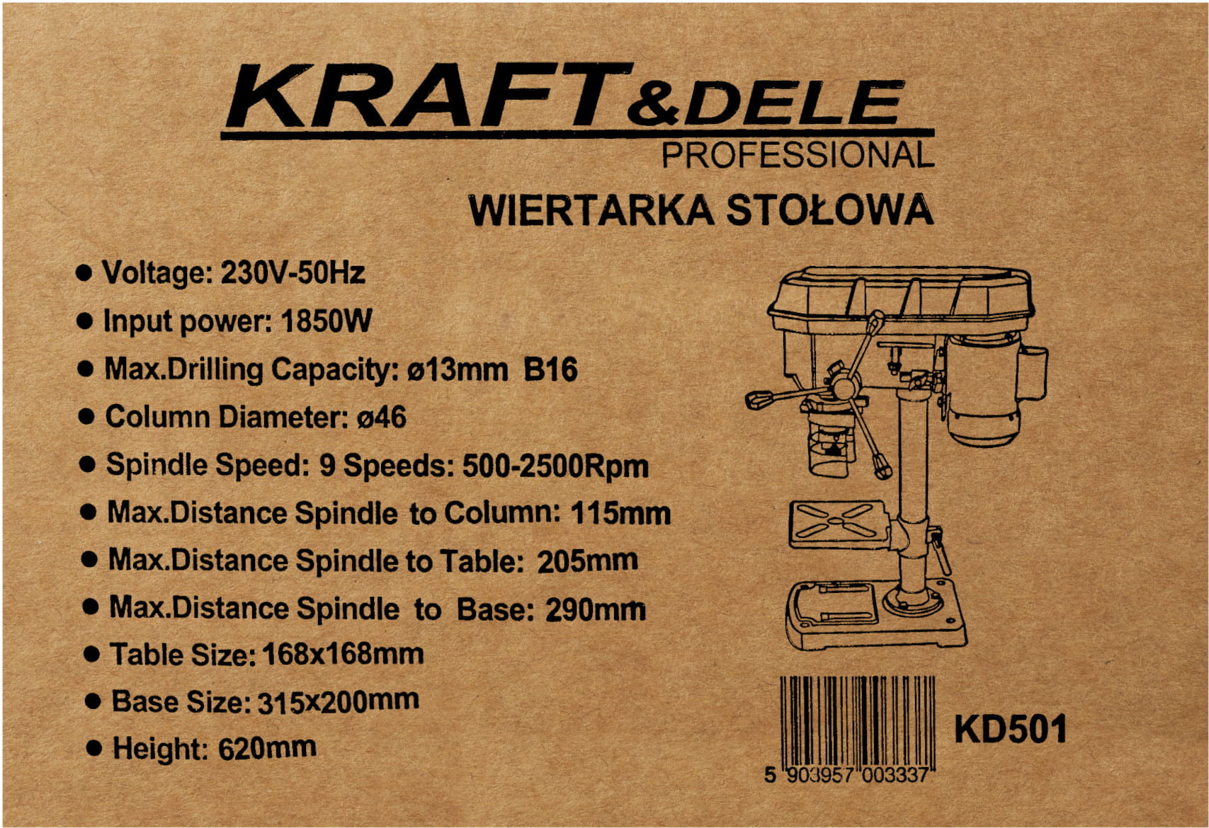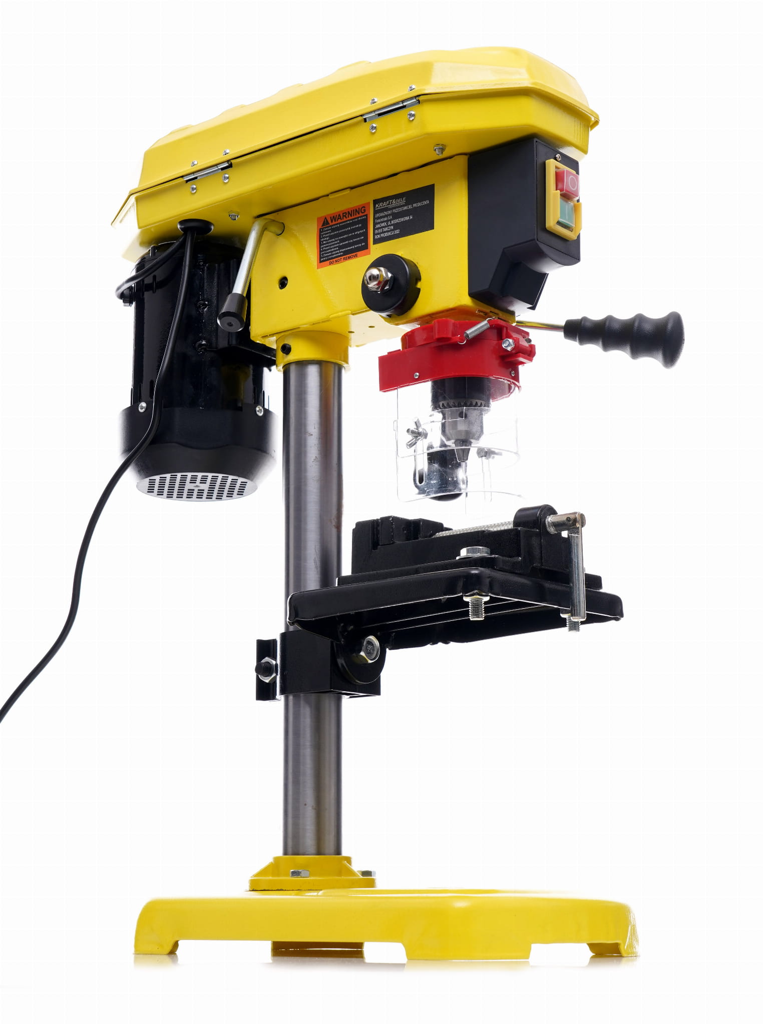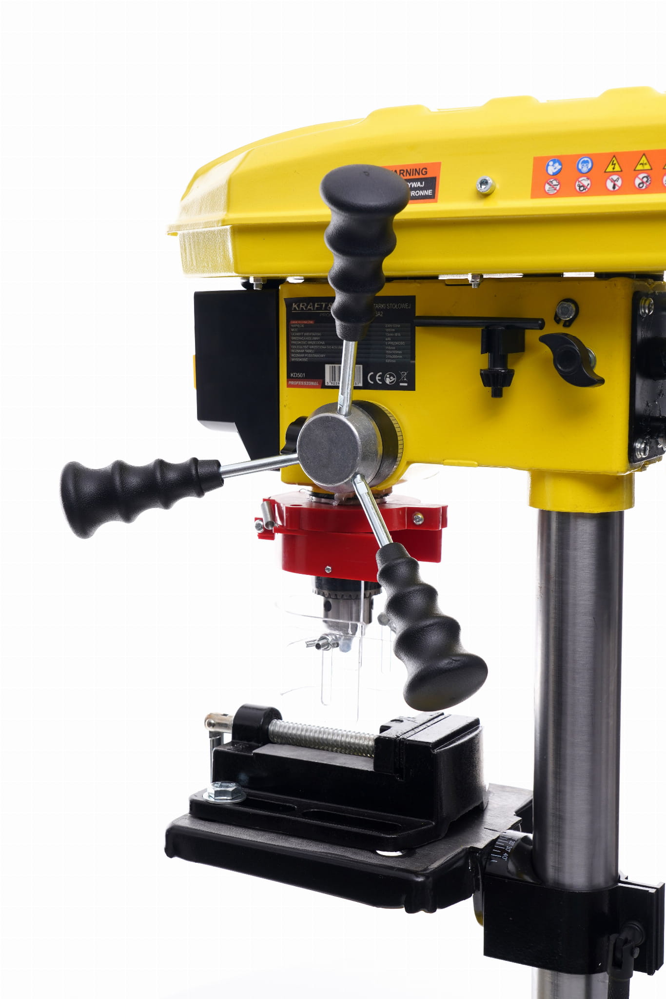Wiertarka kolumnowa KD501 to stacjonarne urządzenie warsztatowe przeznaczone do precyzyjnego wiercenia otworów w drewnie i metalu. Dzięki stałemu zamocowaniu na stole zapewnia powtarzalność i prostopadłość wierceń, której nie można osiągnąć przy użyciu wiertarki ręcznej.