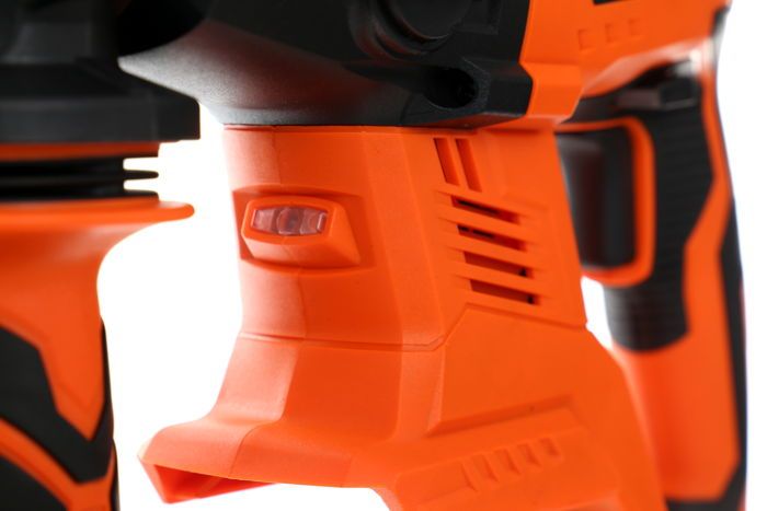 Wskaźnik baterii umożliwia bieżącą kontrolę stanu naładowania akumulatora, co pozwala zaplanować czas pracy i uniknąć nieoczekiwanego rozładowania. Dioda LED oświetla strefę wiercenia w miejscach o ograniczonym dostępie światła.