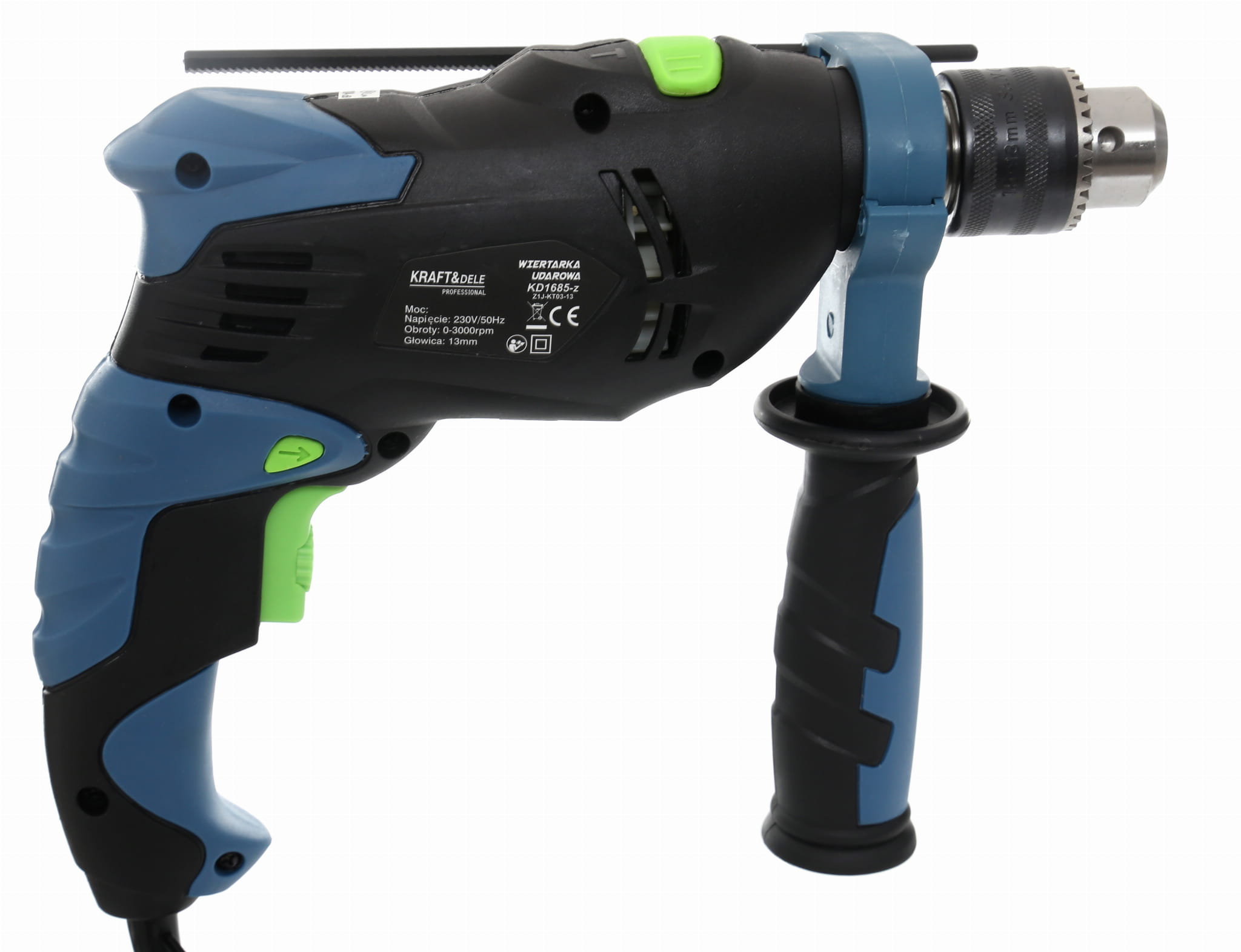 Elektryczna wiertarka udarowa z serii KING SERIES przeznaczona do prac wiertniczych w materiałach budowlanych — murze, betonie i kamieniu — oraz do wiercenia w drewnie, metalu, ceramice i tworzywie sztucznym. Moc 2100W pozwala na pracę z otwornicami i wiertłami o większych średnicach, gdzie modele o niższej mocy tracą skuteczność.