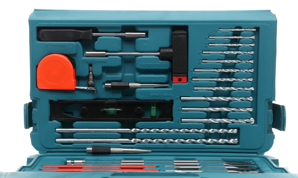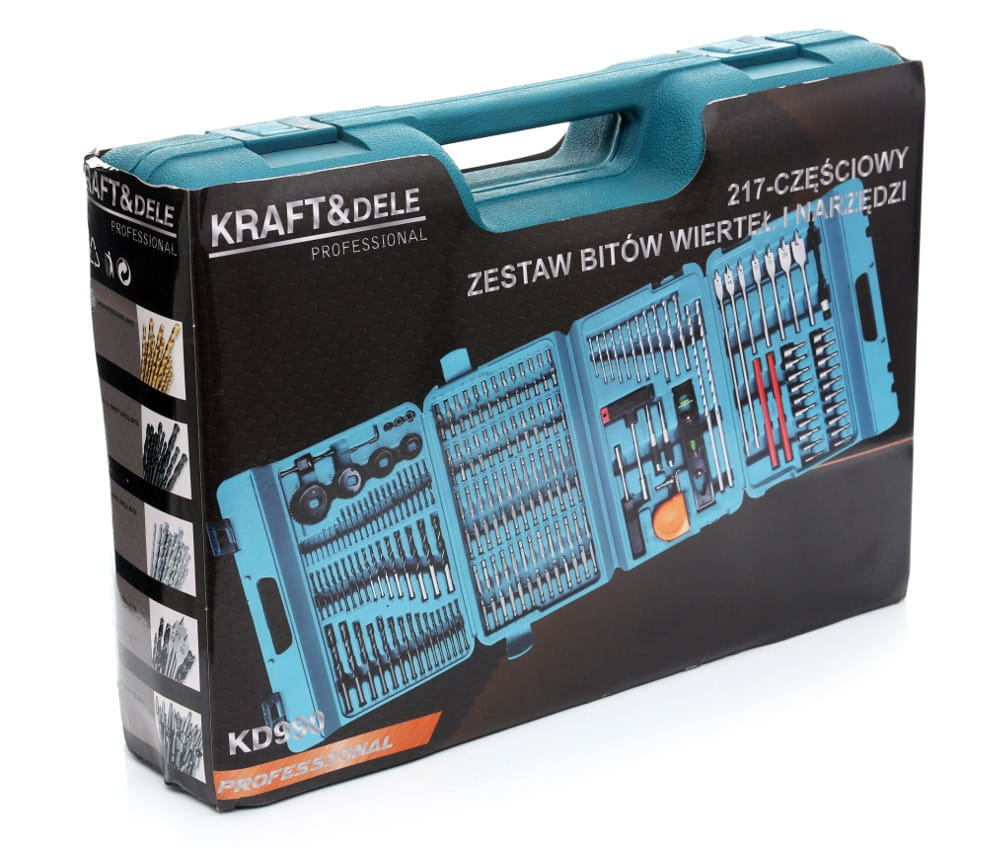 KD990 to kompletny zestaw narzędzi ręcznych i obrotowych przeznaczony do wiercenia w metalu, drewnie i betonie oraz do wkręcania śrub różnych typów. Zawiera 217 elementów przechowywanych w rozkładanej walizce, gotowych do pracy z wiertarko-wkrętarką lub uchwytem ręcznym.