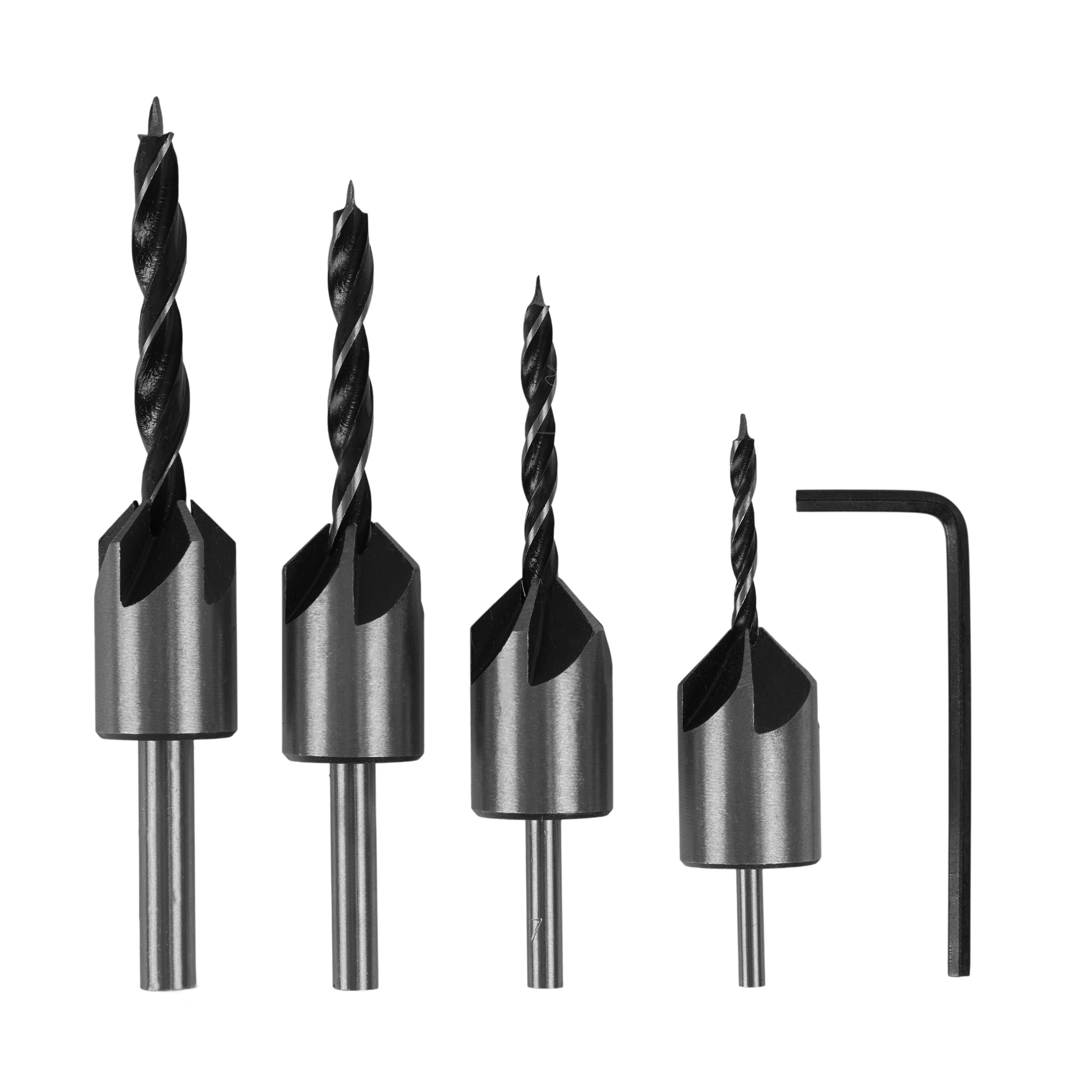 Wiertła do drewna z pogłębiaczem regulowane KD10559 są przeznaczone do precyzyjnego nawiercania otworów pod wkręty montażowe z łbem wpuszczanym. To praktyczny wybór do warsztatu, gdy liczy się czysty montaż i powtarzalna głębokość pogłębienia.