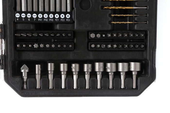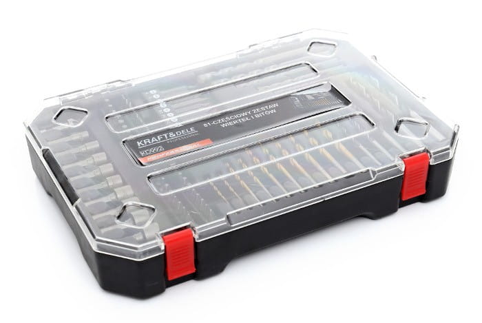 KD992 to kompletny zestaw 81 narzędzi obejmujący wiertła do metalu (HSS), drewna i betonu, bity w kilku systemach oraz nasadki sześciokątne. Zestaw przeznaczony do pracy z wiertarkami i wkrętarkami wyposażonymi w uchwyt 1/4 cala.