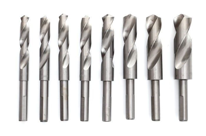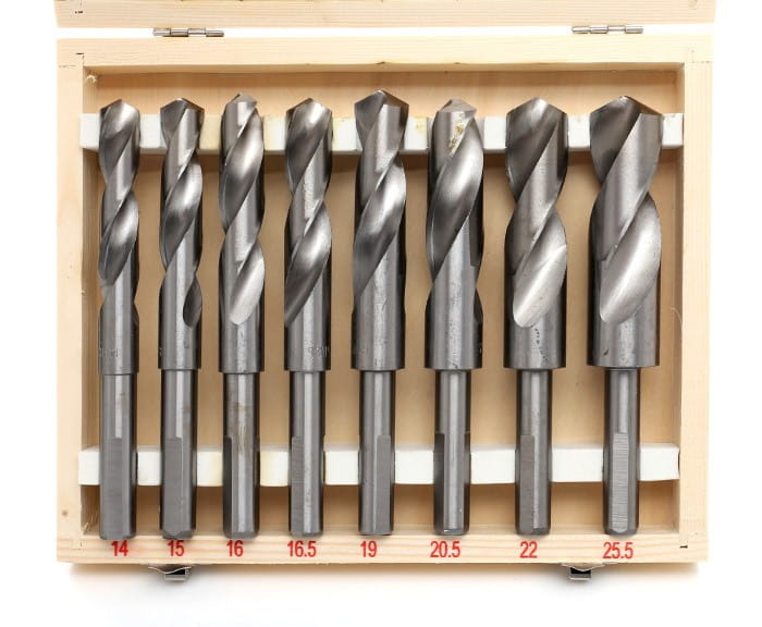 Zestaw obejmuje wiertła od 14 do 25,5 mm — zakres typowy dla wiercenia otworów pod połączenia śrubowe większych rozmiarów, przepusty instalacyjne oraz obróbkę elementów konstrukcyjnych. Wiertła o średnicy powyżej 13 mm wymagają wiertarki lub wiertarko-frezarki z odpowiednim momentem obrotowym.
