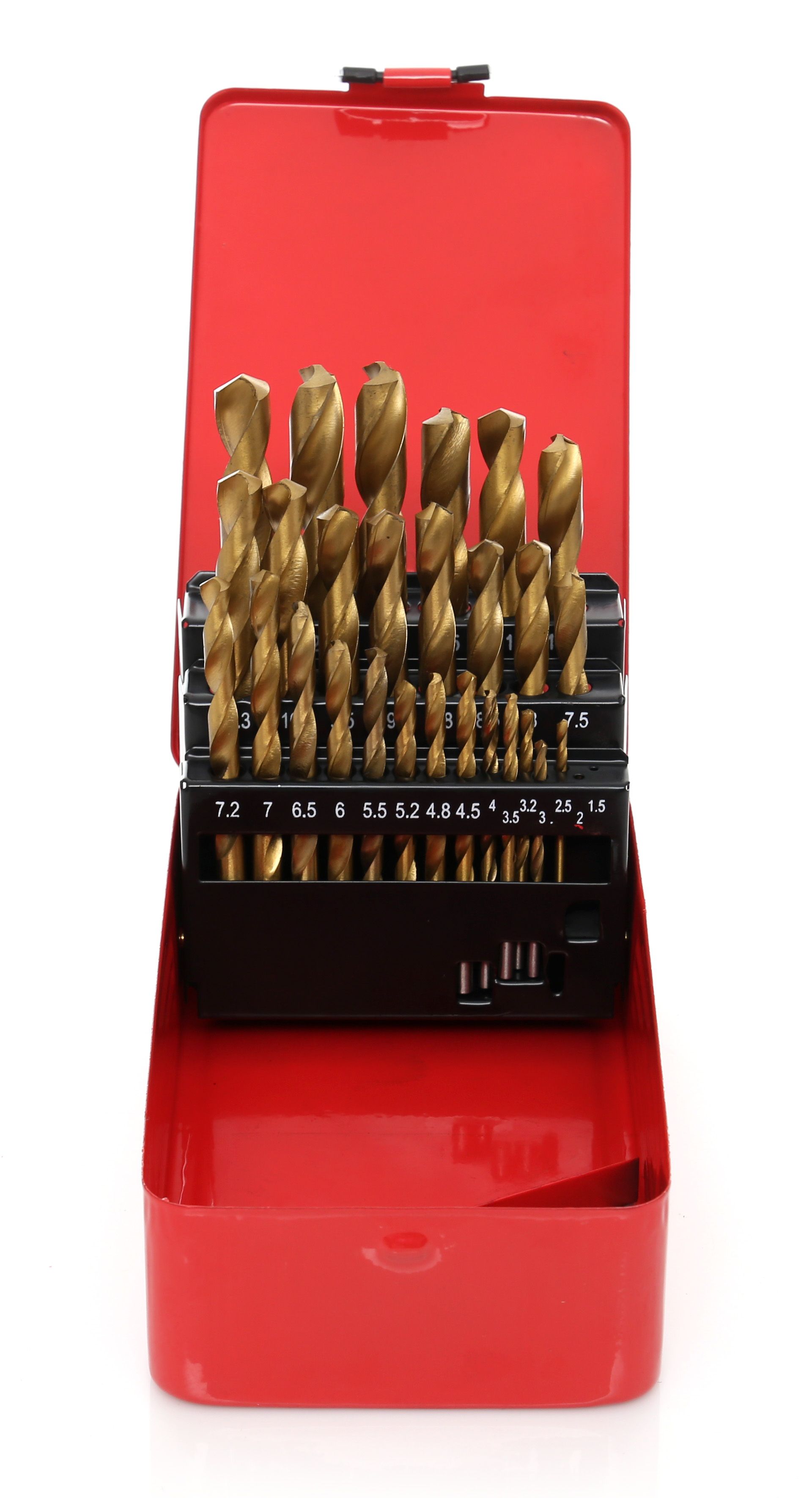 WIERTŁA TYTANOWE DO METALU 29 szt ZESTAW WIERTEŁ / KD10344 to praktyczny komplet do wiercenia w metalu i tworzywach, nastawiony na trwałość i powtarzalne nawiercanie. Powłoka tytanu oraz geometria ostrza ułatwiają rozpoczęcie otworu i wspierają stabilną pracę w wielu materiałach.