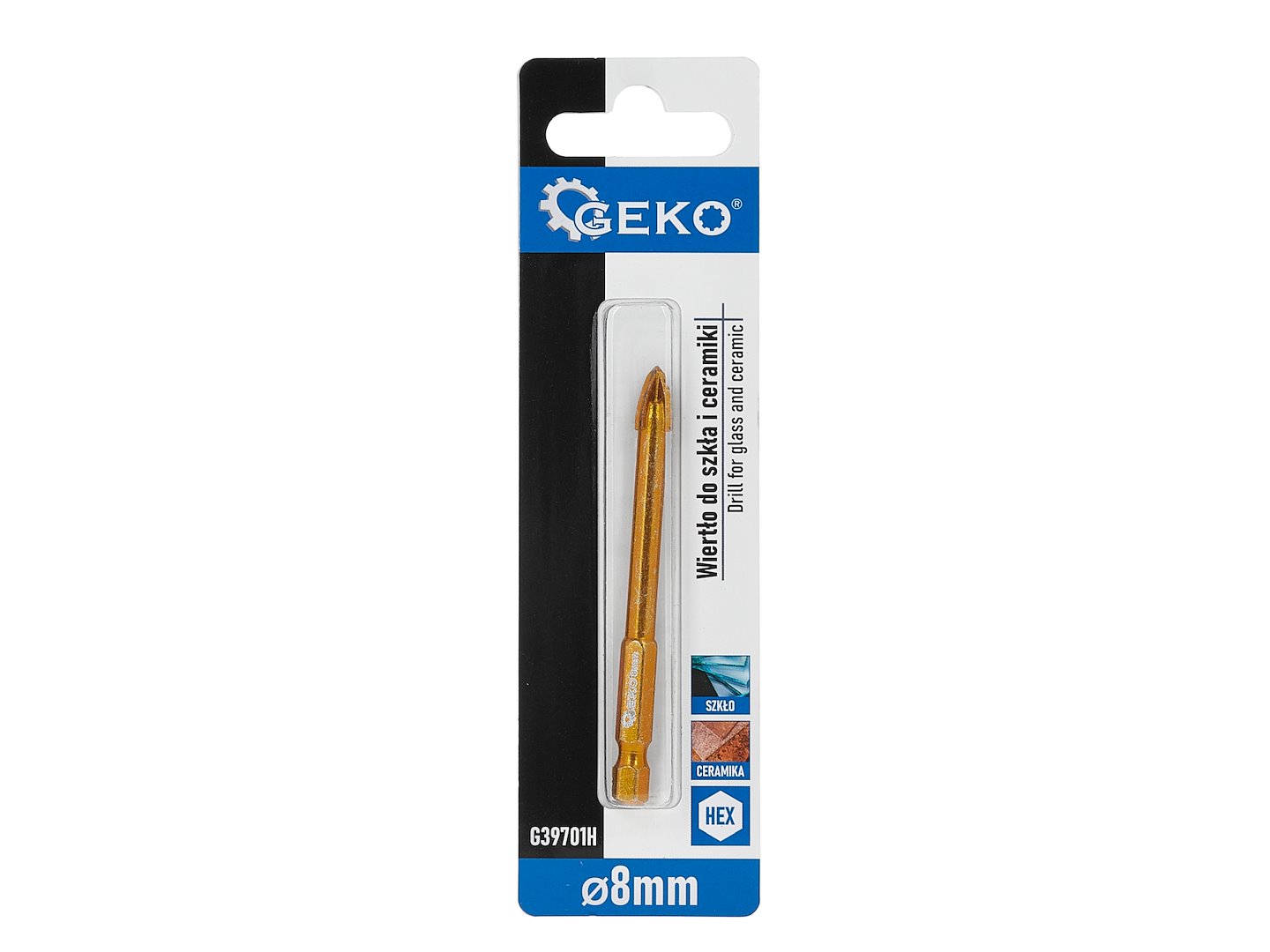 Wiertło przystosowane do pracy w szkle float, ceramice ściennej i podłogowej, gresie porcelanowym oraz porcelanie. Nie jest przeznaczone do wiercenia w betonie, cegle ani metalu — do tych materiałów wymagane są wiertła o innej konstrukcji ostrza.
