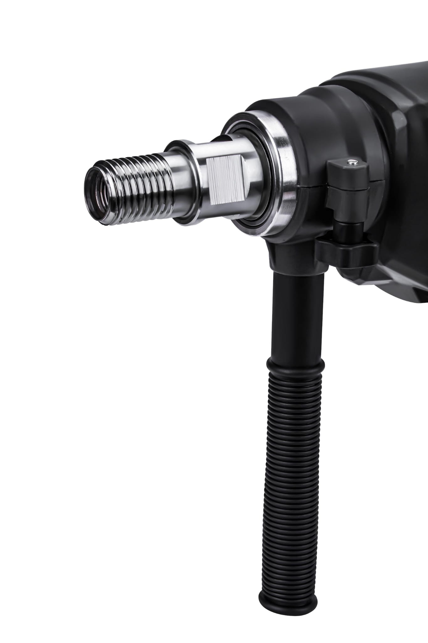 Konstrukcja wiertnicy umożliwia mocowanie na statywie wiertniczym, co zapewnia prostopadłość odwiertu i odciąża operatora podczas długotrwałej pracy w jednym miejscu.