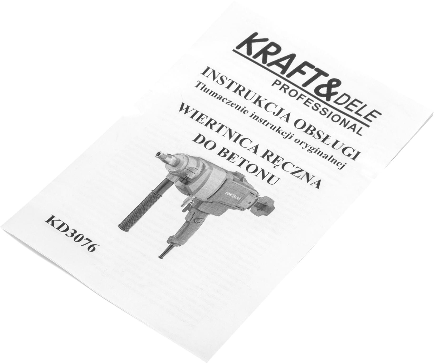 Wiertnica KD3076, uchwyt prowadzący, klucz montażowy, instrukcja obsługi w języku polskim.