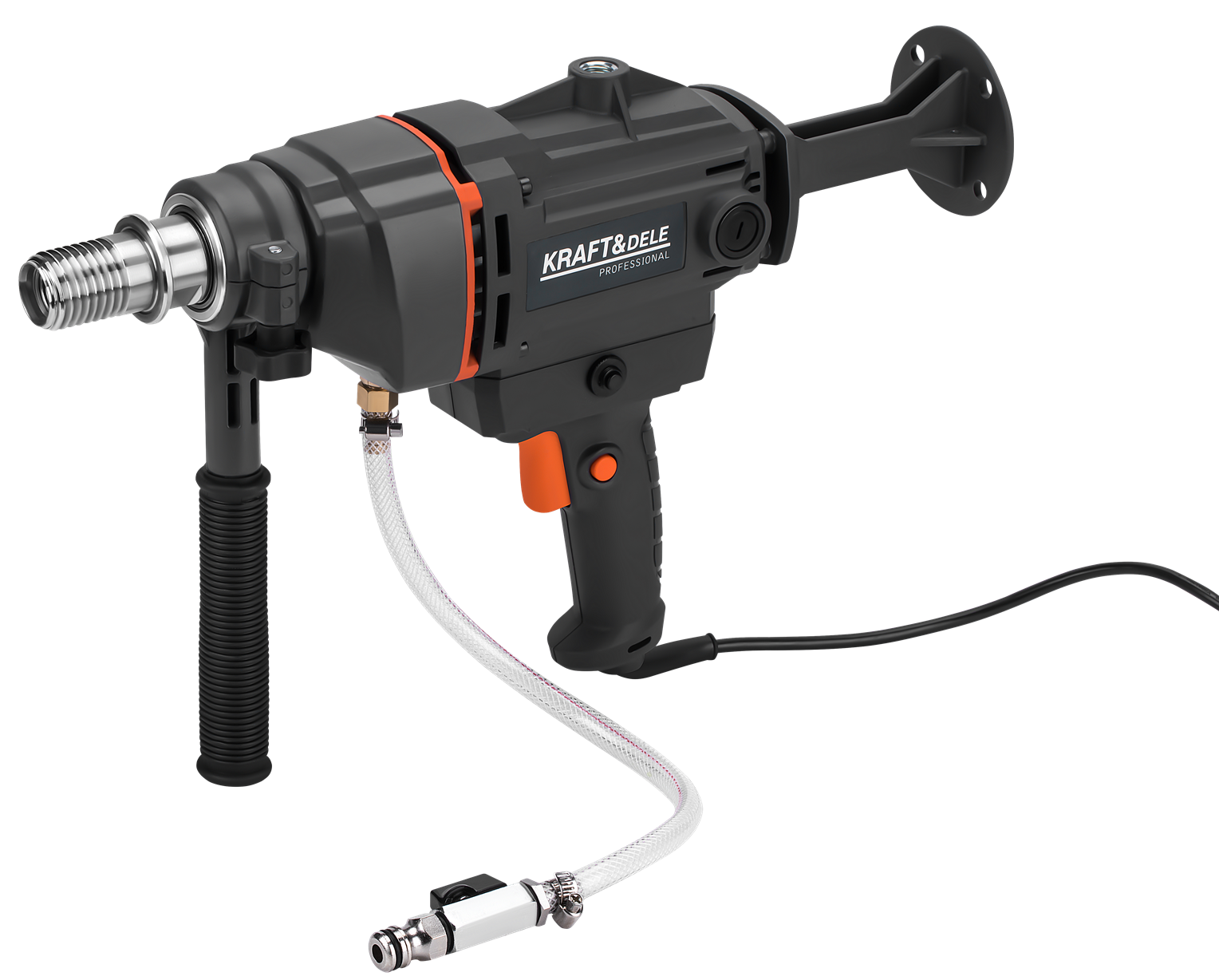 Wiertnica KD5952 to narzędzie przeznaczone do intensywnych prac wiertniczych w betonie, cegle i innych materiałach budowlanych. Obsługuje wiertła koronowe do średnicy Ø202 mm i jest wyposażona w układ chłodzenia wodnego, który przedłuża żywotność narzędzi skrawających podczas długotrwałej pracy.
