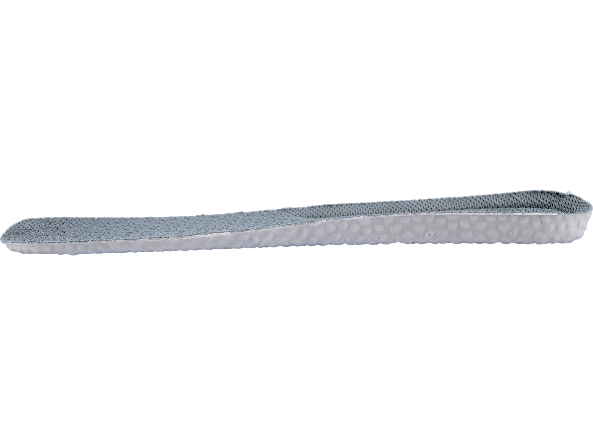 Wkładka ma 5 mm grubości w przedniej części i pod śródstopiem oraz 9 mm pod piętą. Taki układ zapewnia większą amortyzację w strefie największych obciążeń, jednocześnie zachowując niski profil w palcach dla lepszego czucia podłoża.