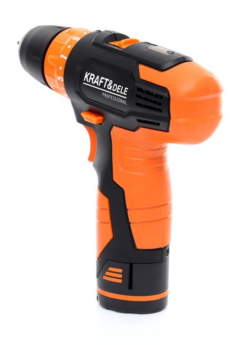 Wkrętarka 12V Li-Ion KD1670 marki KRAFT&DELE to kompaktowa wkrętarko-wiertarka do szybkiego wkręcania i wiercenia w typowych pracach montażowych. Dwa biegi, regulacja momentu i podświetlenie LED ułatwiają precyzyjną pracę także w trudno dostępnych miejscach.