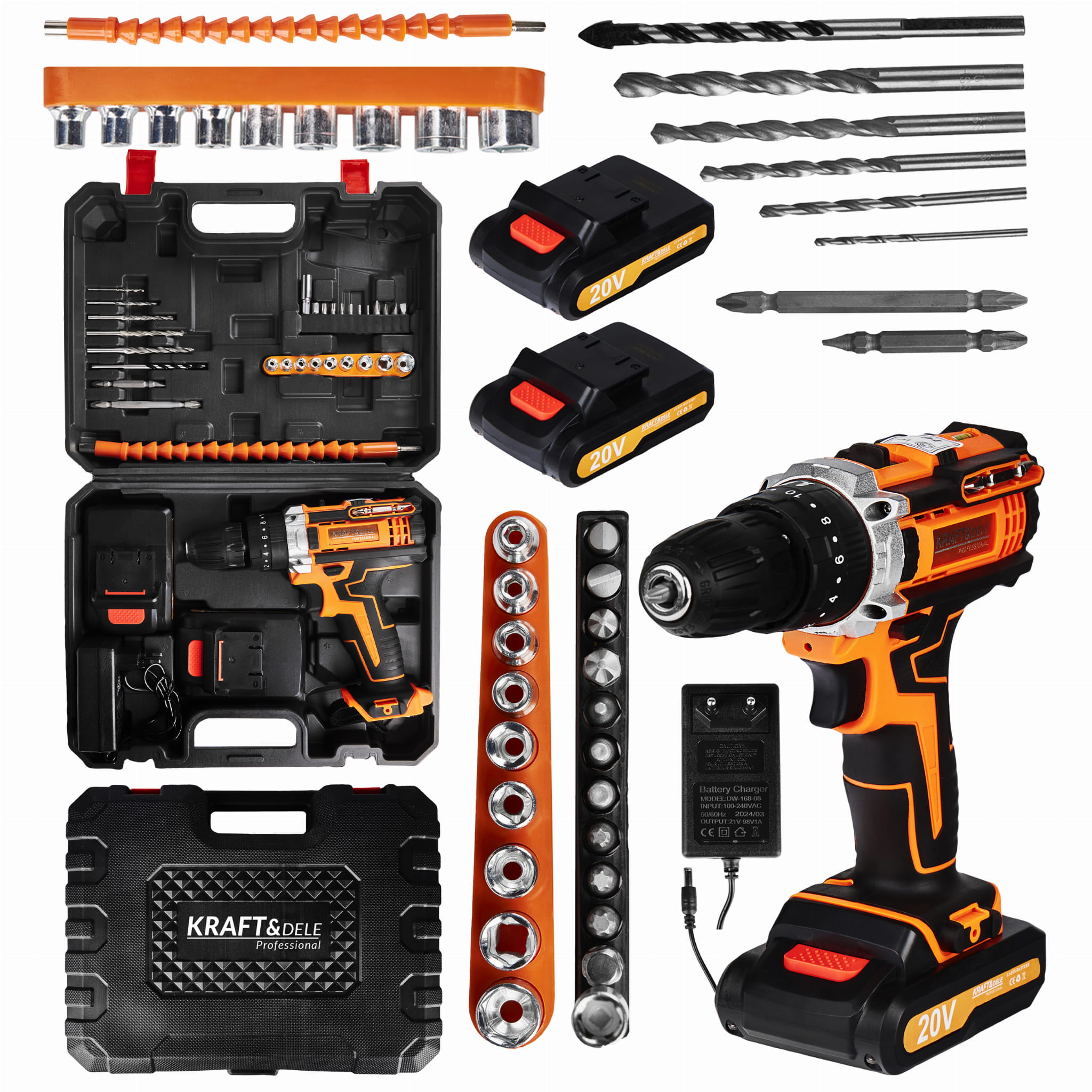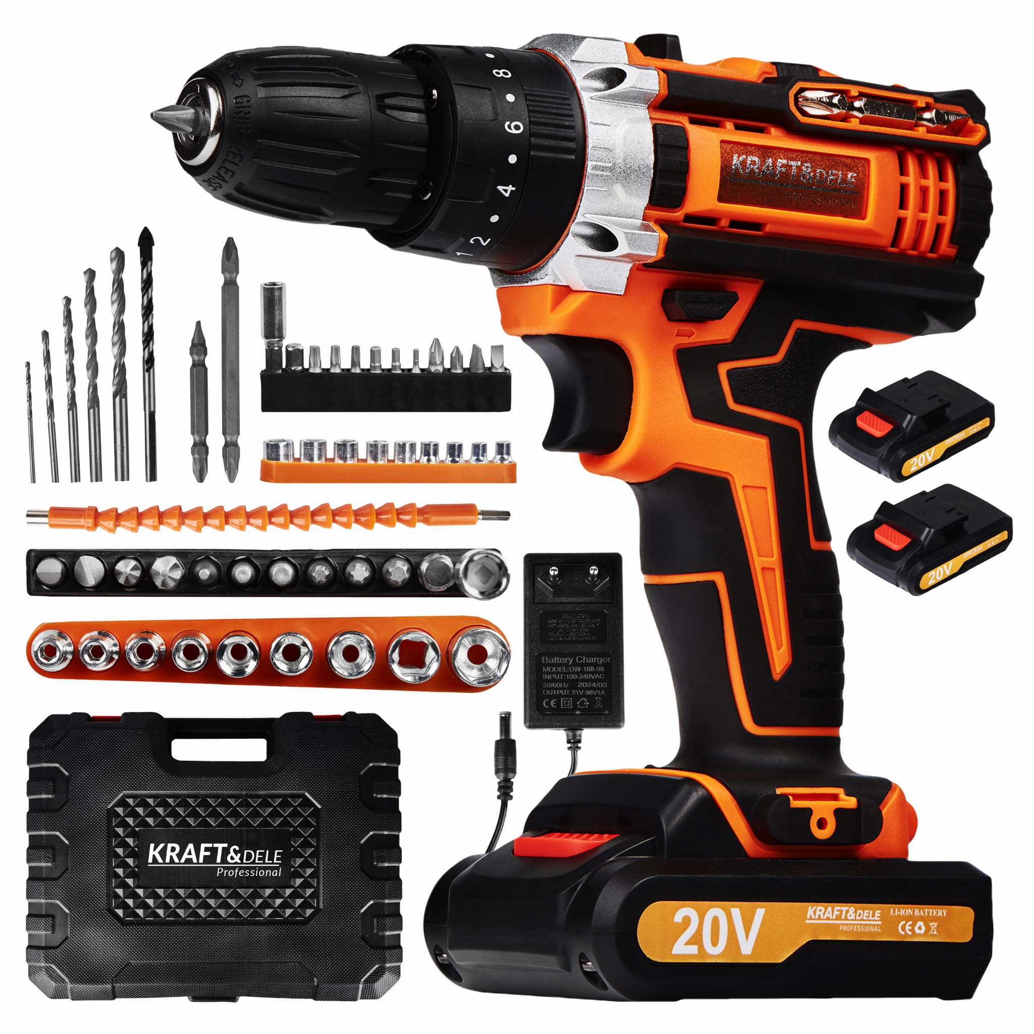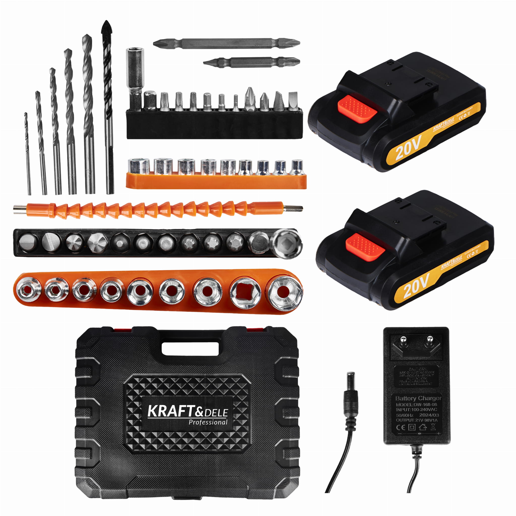 Wkrętarka akumulatorowa KD3086 • 2 akumulatory 20V 2Ah • Ładowarka • 9 nasadek • 1 miękkie złącze • 10 bitów śrubowych • 1 złącze śrubowe • 4 wiertła • Solidna walizka transportowa • Instrukcja obsługi w języku polskim