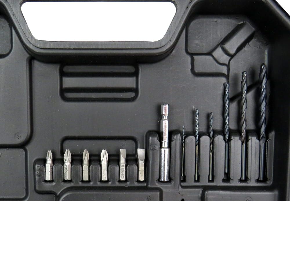 W zestawie z modelem KD1572 otrzymujesz baterię, ładowarkę, oryginalną walizkę oraz akcesoria (wiertła, przedłużkę, bity), co upraszcza organizację pracy.