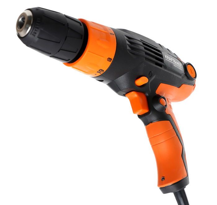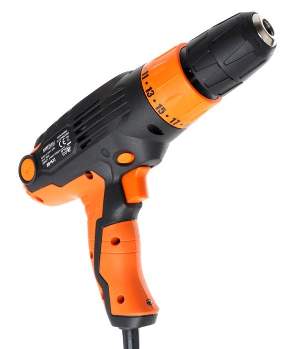 KD1673 to sieciowa wkrętarko-wiertarka o mocy 880W, zasilana bezpośrednio z sieci 230V. Urządzenie oferuje dwa zakresy prędkości obrotowej, regulację momentu obrotowego w 17 pozycjach oraz rewers — co pozwala na wkręcanie i wykręcanie elementów złącznych, a także wiercenie w typowych materiałach budowlanych.