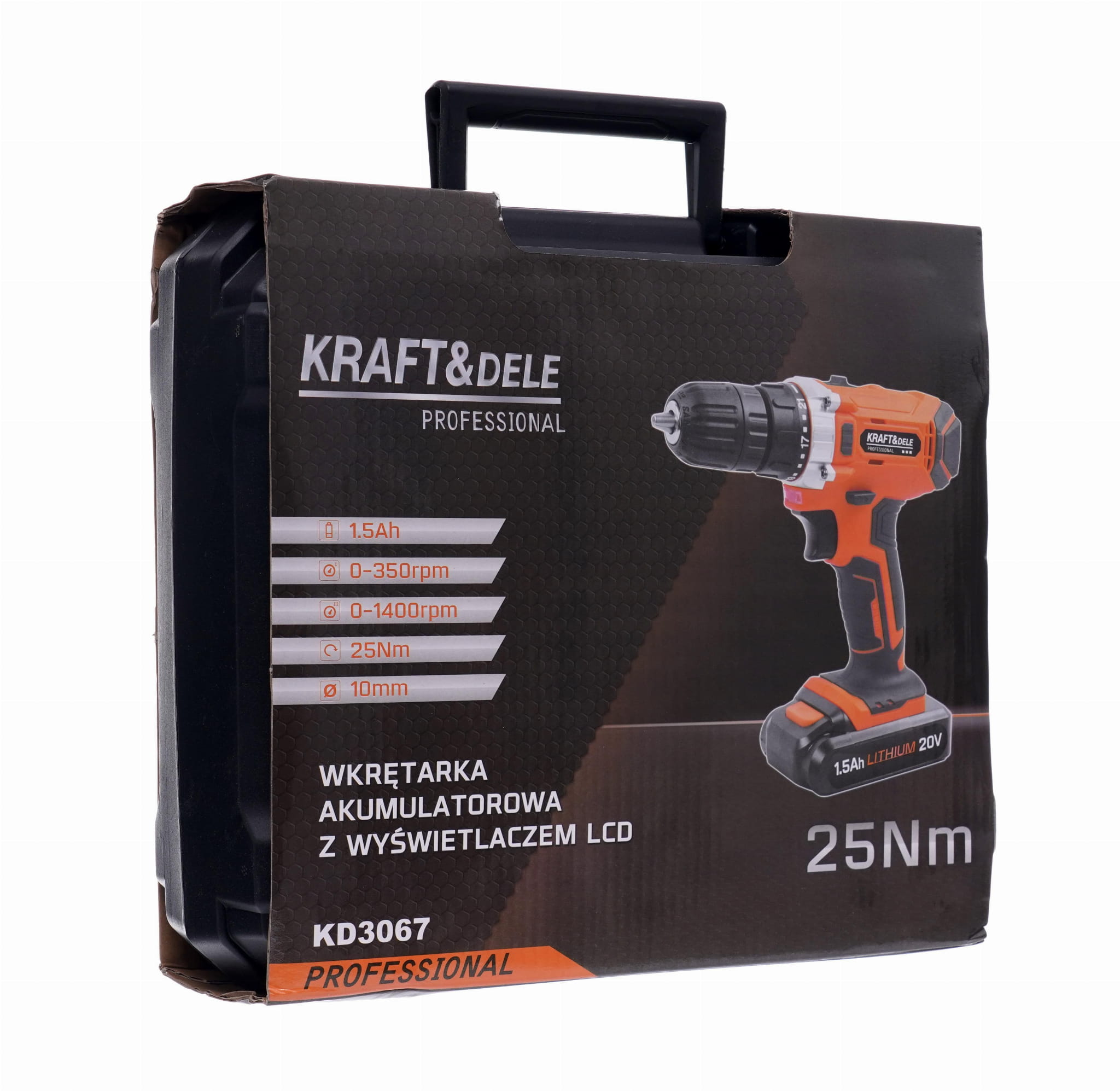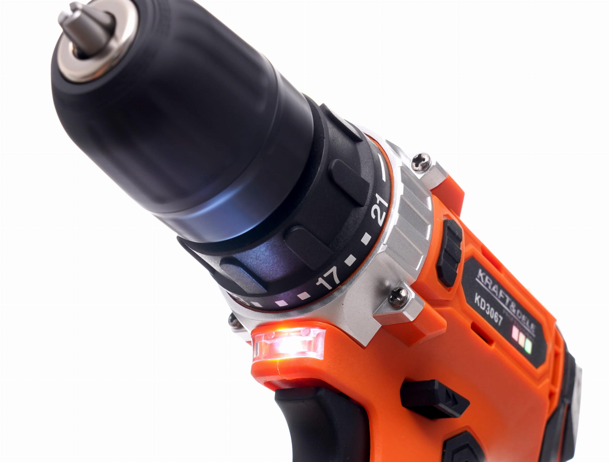 KD3067 to akumulatorowa wiertarko-wkrętarka zasilana napięciem 20V z ogniwami litowo-jonowymi. Urządzenie wyposażono w wyświetlacz LCD prezentujący bieżące parametry pracy, 21-stopniowe sprzęgło przeciążeniowe oraz dwubiegową przekładnię. Zestaw zawiera dwa akumulatory i walizkę transportową.