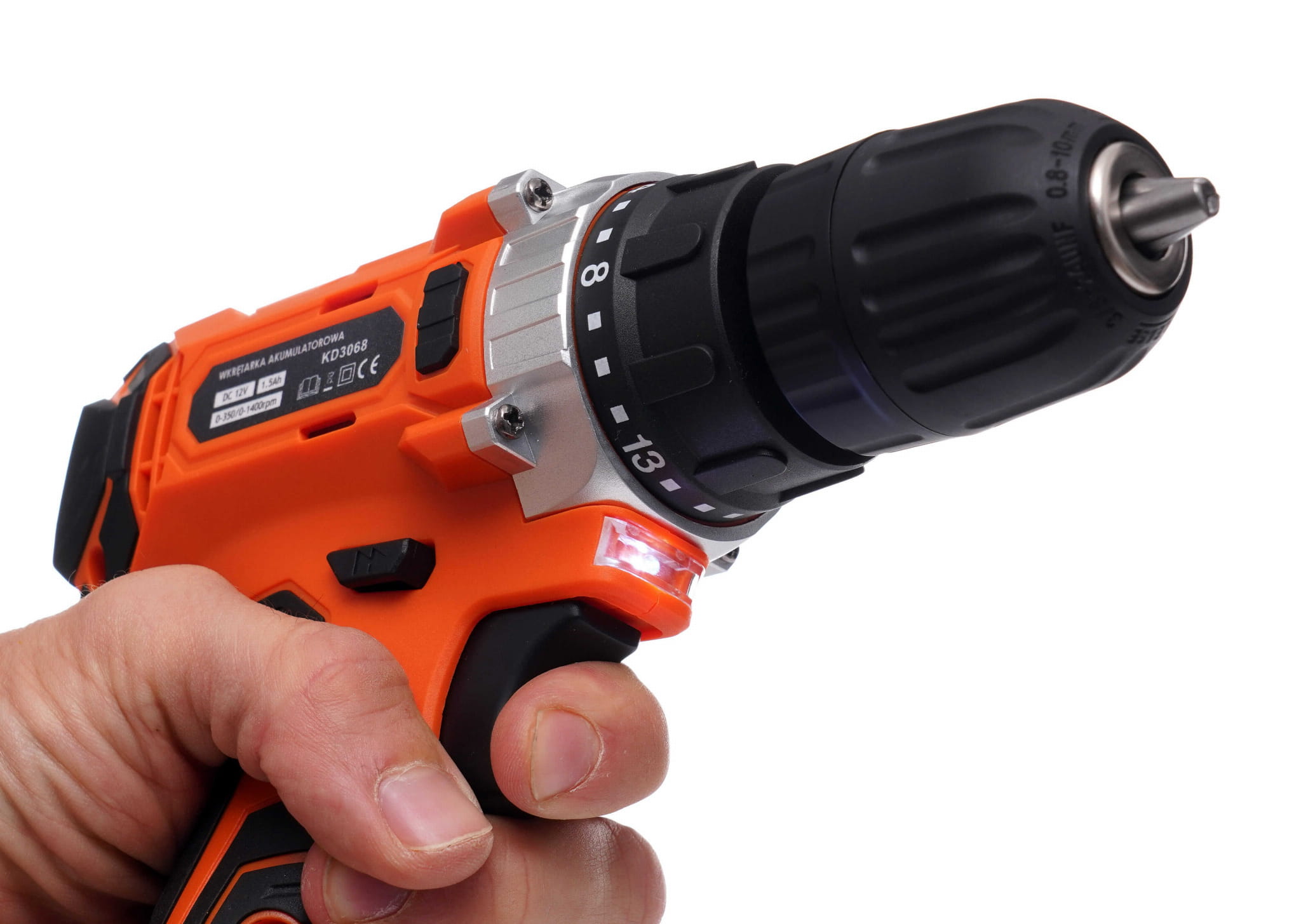 Gumowe strefy antypoślizgowe na uchwycie poprawiają pewność trzymania i amortyzują drgania podczas pracy. Dioda LED oświetla obszar roboczy, co jest przydatne w ciemnych przestrzeniach, np. szafkach lub wnękach montażowych.