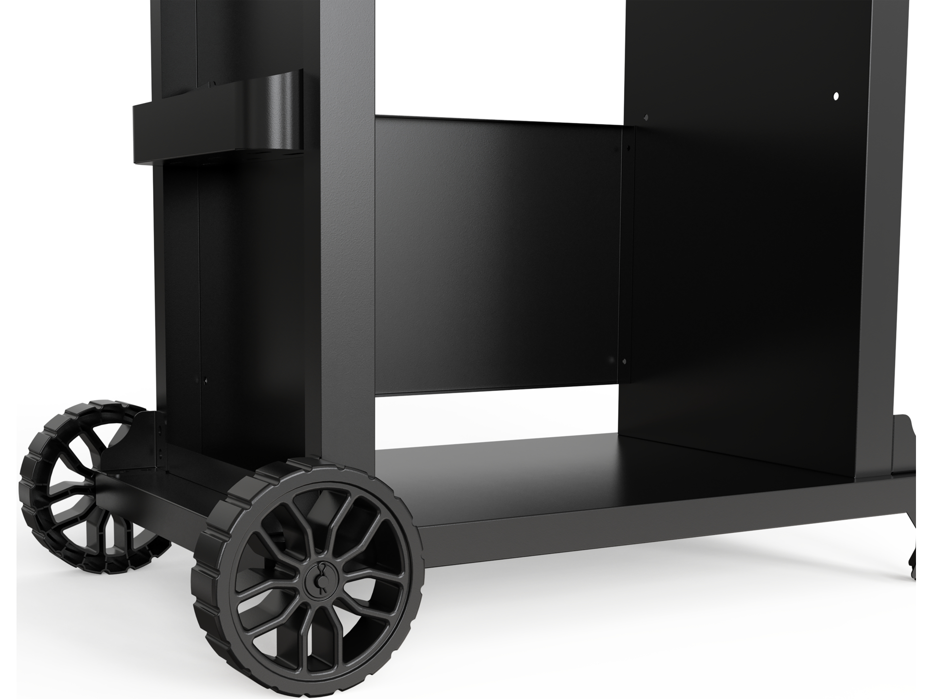 Dwa kółka zamontowane na jednej osi umożliwiają przemieszczanie wózka metodą przechyłu. Rozwiązanie pozwala na relokację grilla między różnymi miejscami bez konieczności jego demontażu. Kółka redukują wysiłek potrzebny do transportu załadowanego wózka.