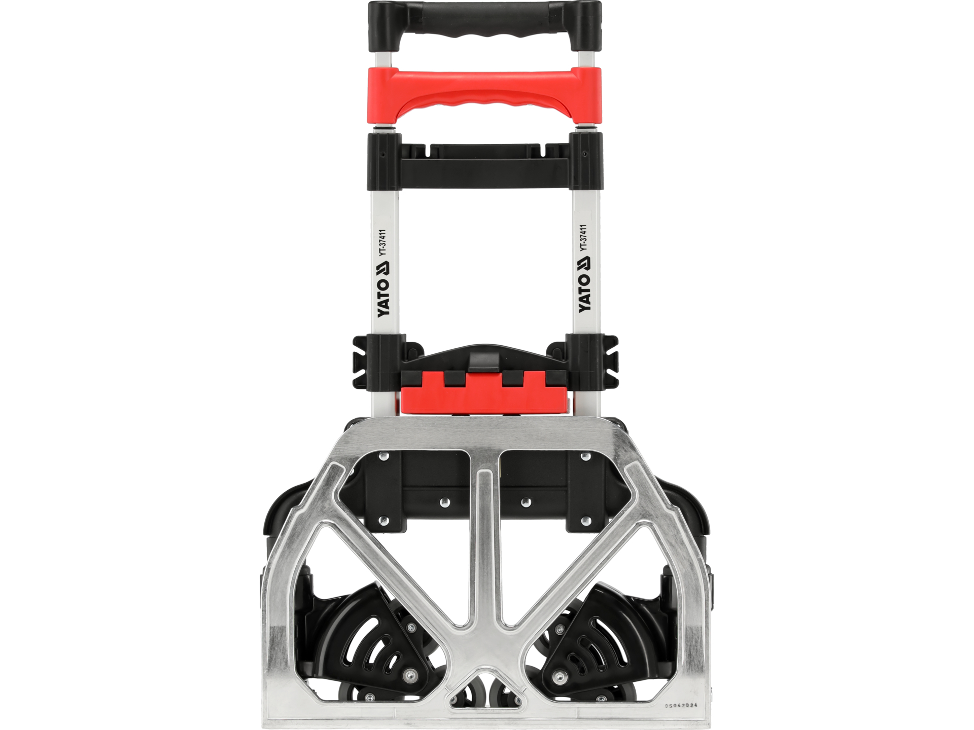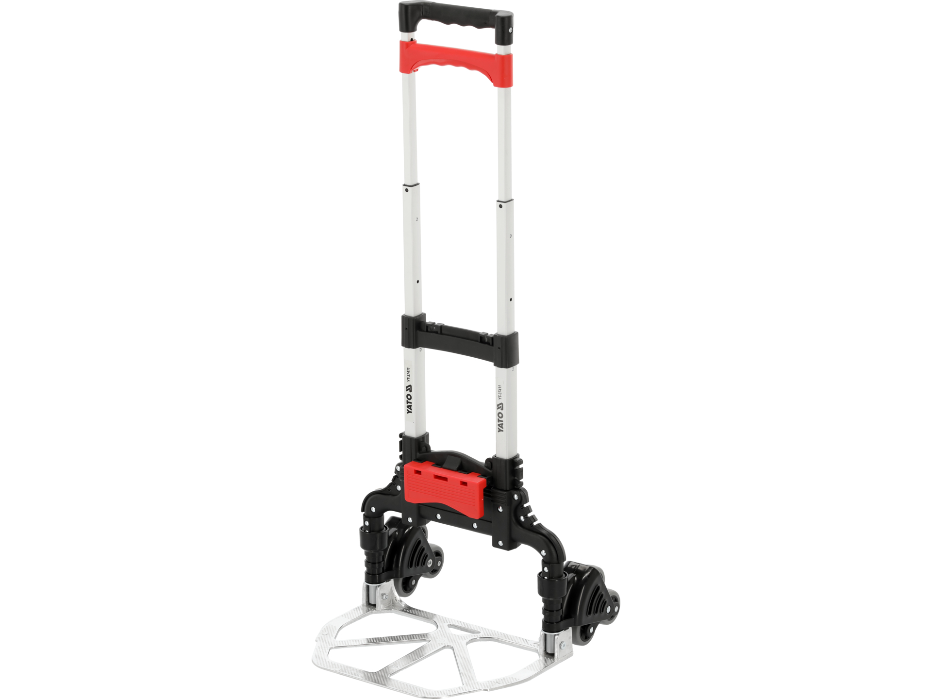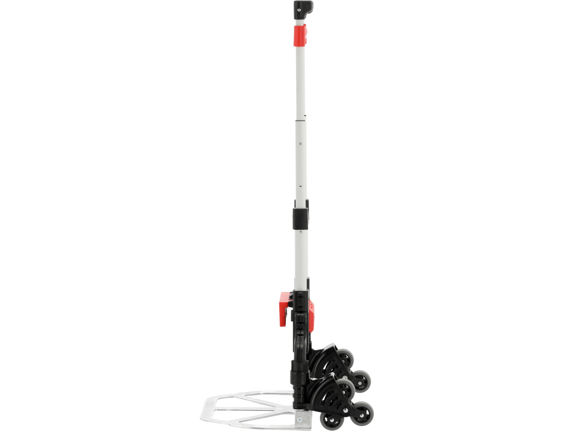 Składany wózek transportowy z aluminiową platformą, przeznaczony do przewozu ładunków w magazynach, biurach i gospodarstwach domowych. Konstrukcja umożliwia transport po schodach, a mechanizm składania redukuje wymiary o 60% względem stanu rozłożonego.