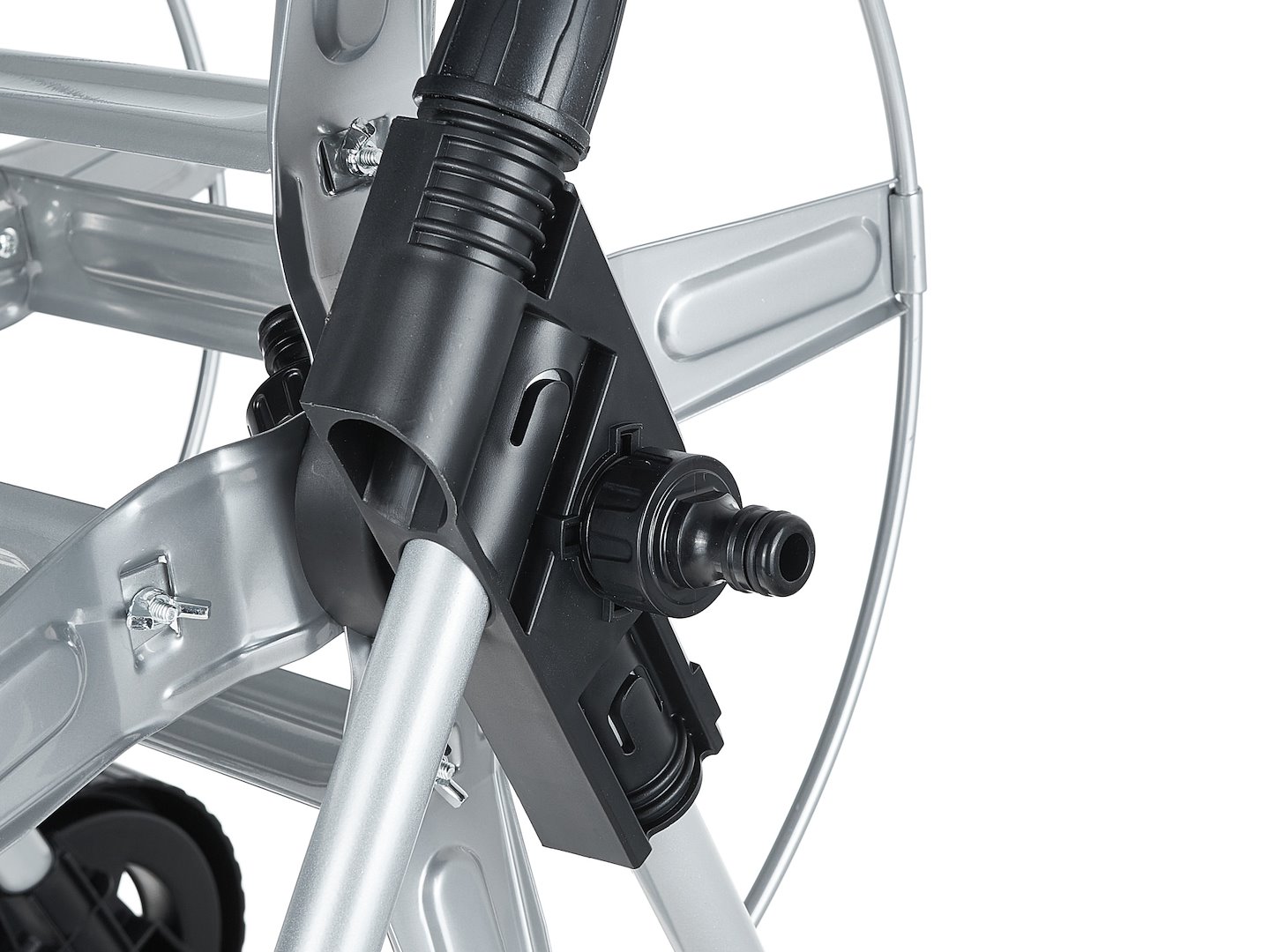 Stalowa konstrukcja zapewnia stabilność podczas nawijania węża pod obciążeniem oraz odporność na odkształcenia przy kontakcie z wilgocią i zmiennymi warunkami atmosferycznymi. W porównaniu z rozwiązaniami plastikowymi metal lepiej znosi wieloletnie użytkowanie na zewnątrz.