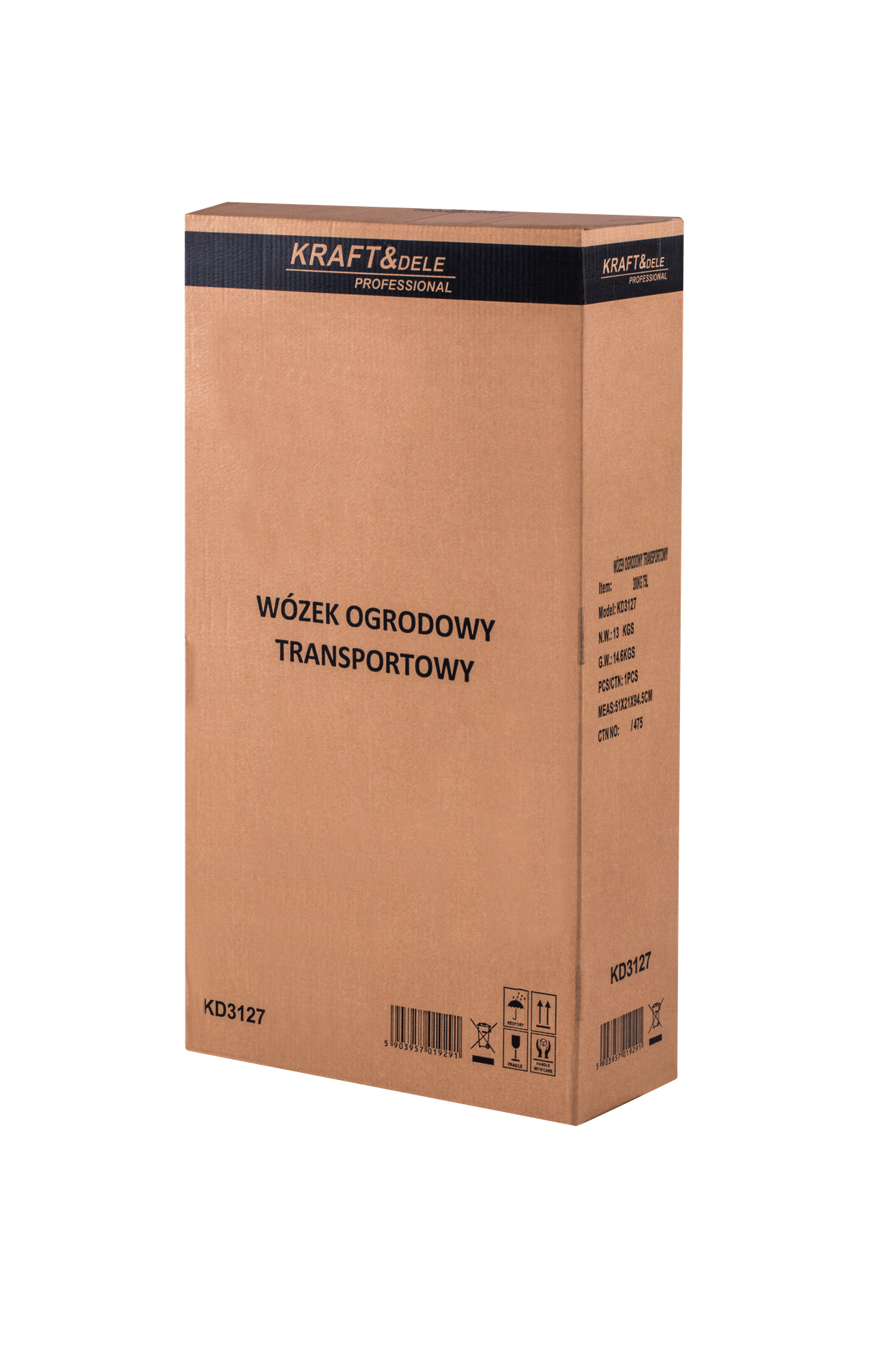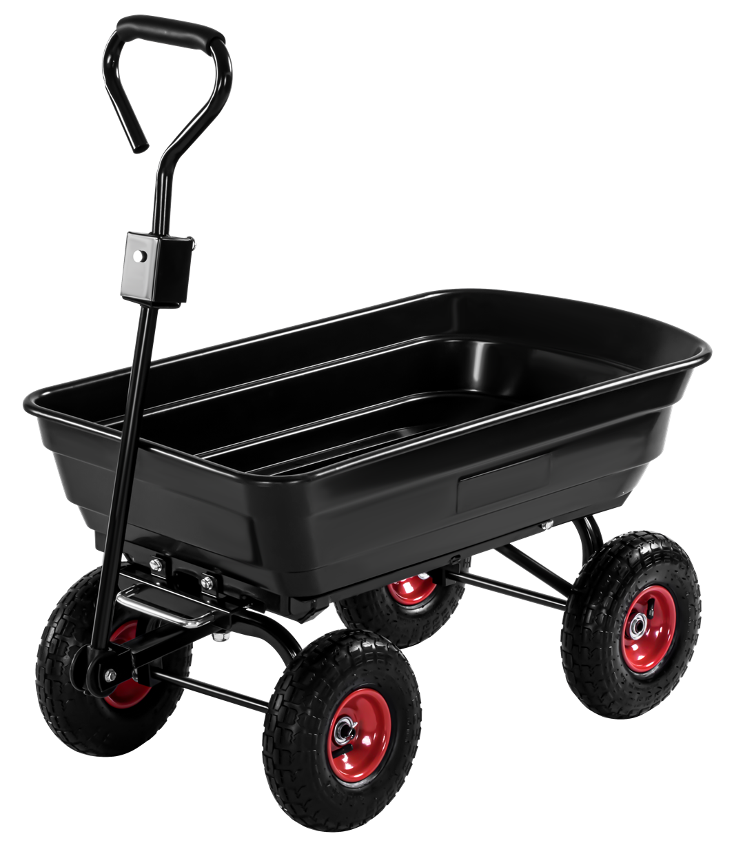 KD3127 to wózek transportowy z kiprowaniem, przeznaczony do przewożenia ciężkich ładunków w ogrodzie, na działce i placu budowy. Stalowo-polimerowa konstrukcja z kołami pneumatycznymi pozwala na pracę zarówno na utwardzonym podłożu, jak i w terenie.
