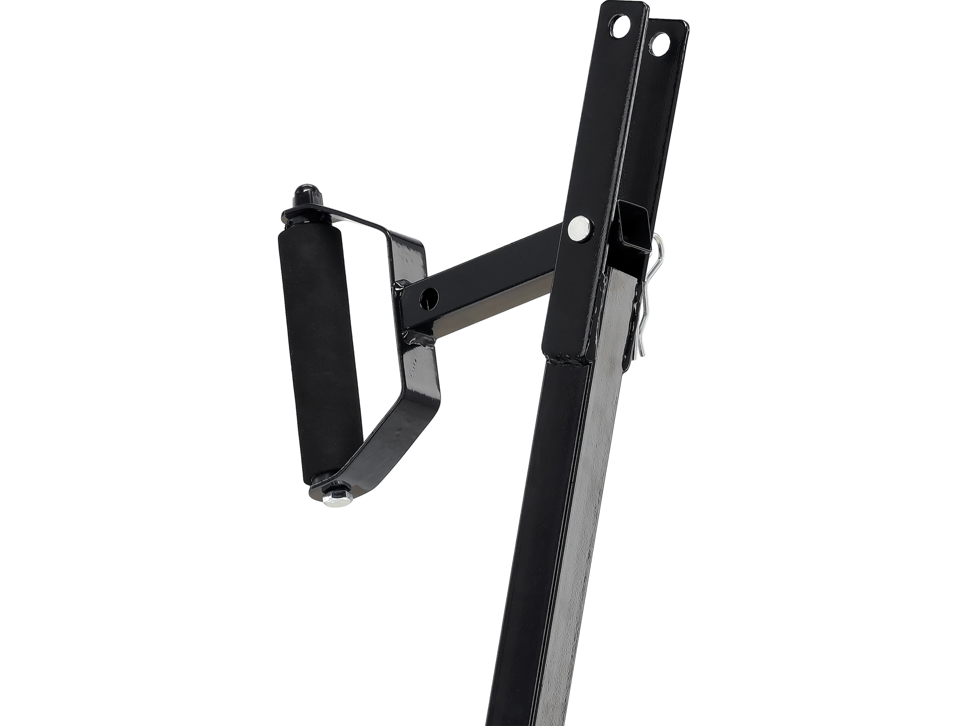 Dyszel umożliwia podczepienie wózka do ciągnika ogrodowego, quada lub innego pojazdu z odpowiednim zaczepem. Przed jazdą sprawdzić stabilność połączenia i prawidłowe działanie skrętnej osi przedniej. Przy jeździe z napędem mechanicznym zachować ostrożność na zakrętach i nierównościach terenu.