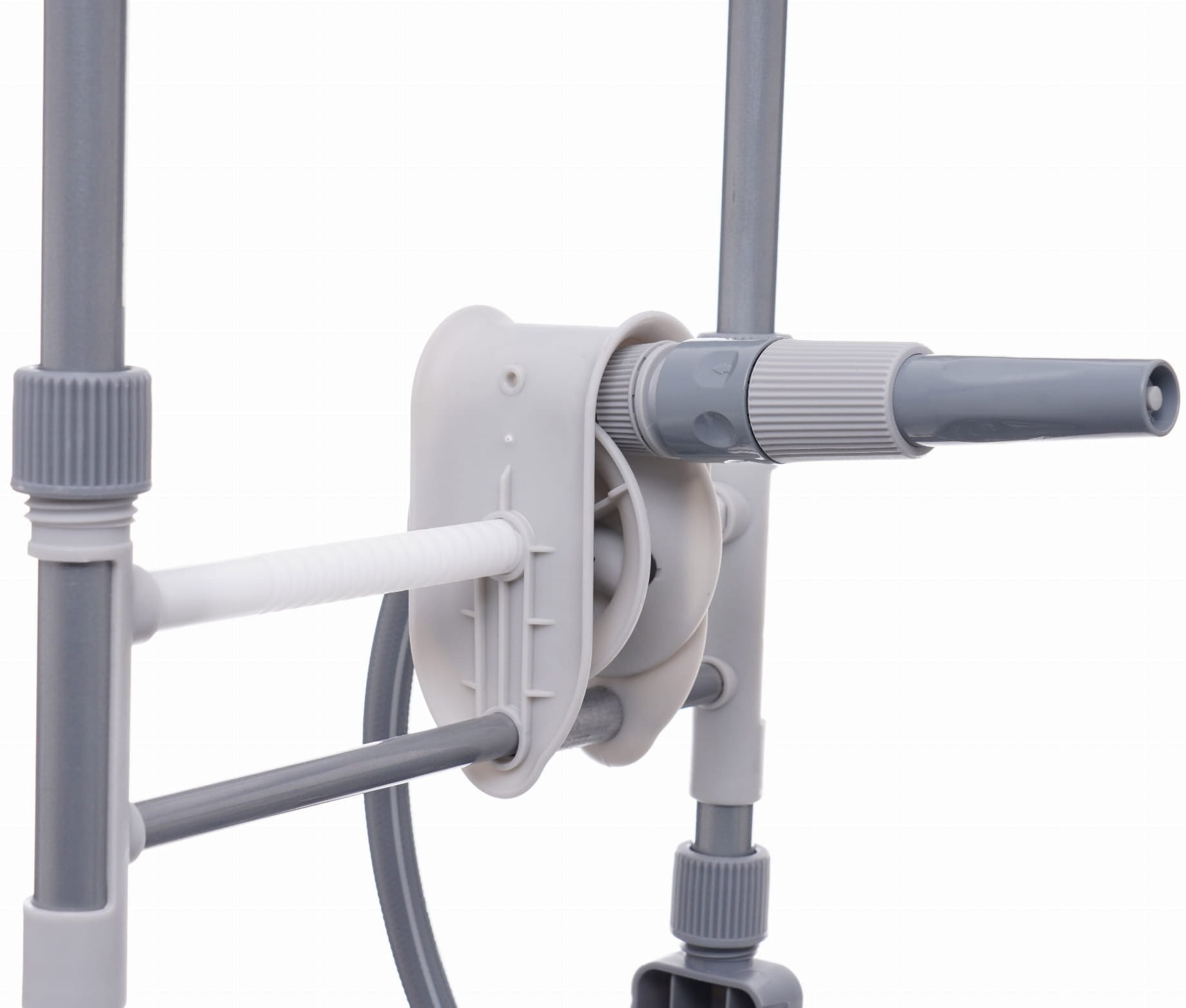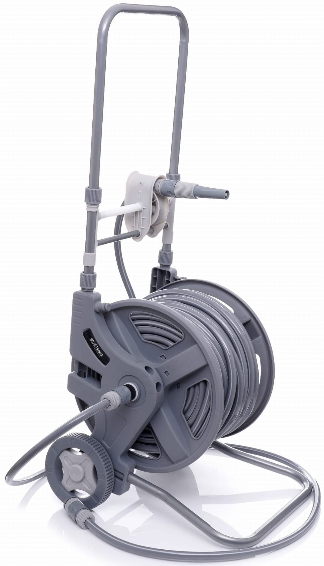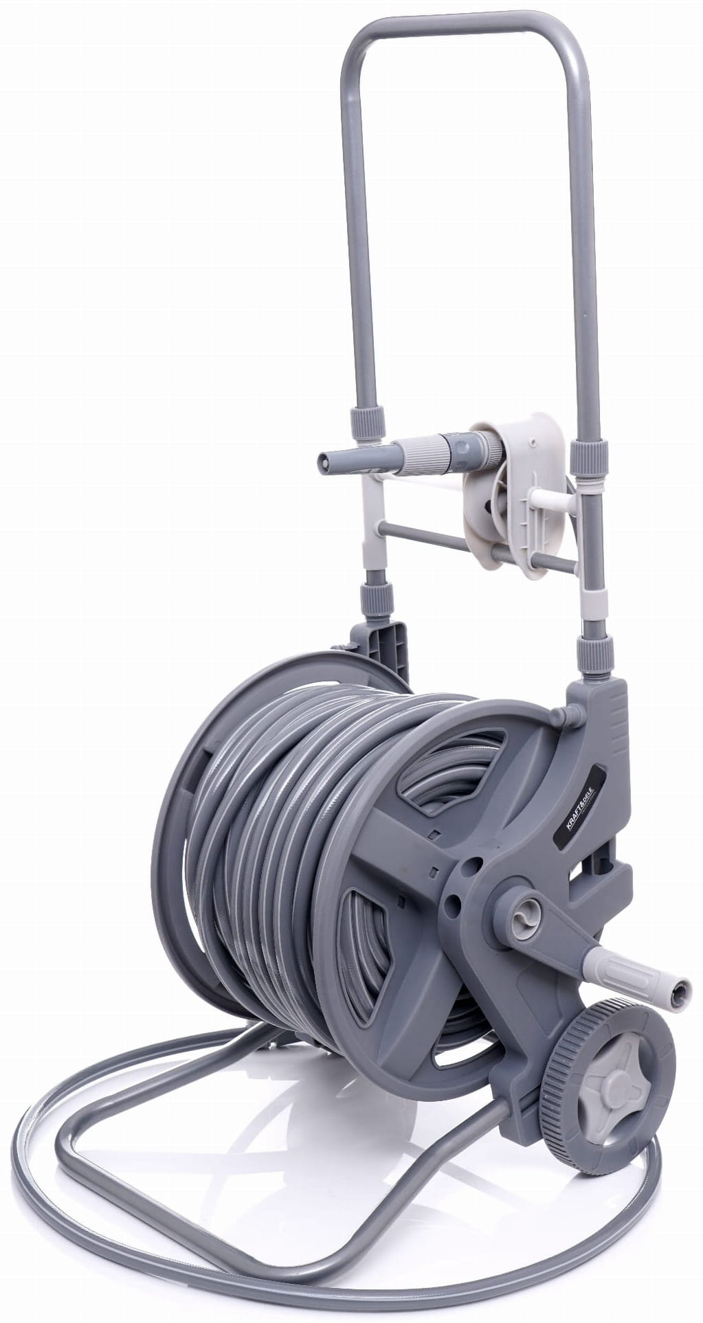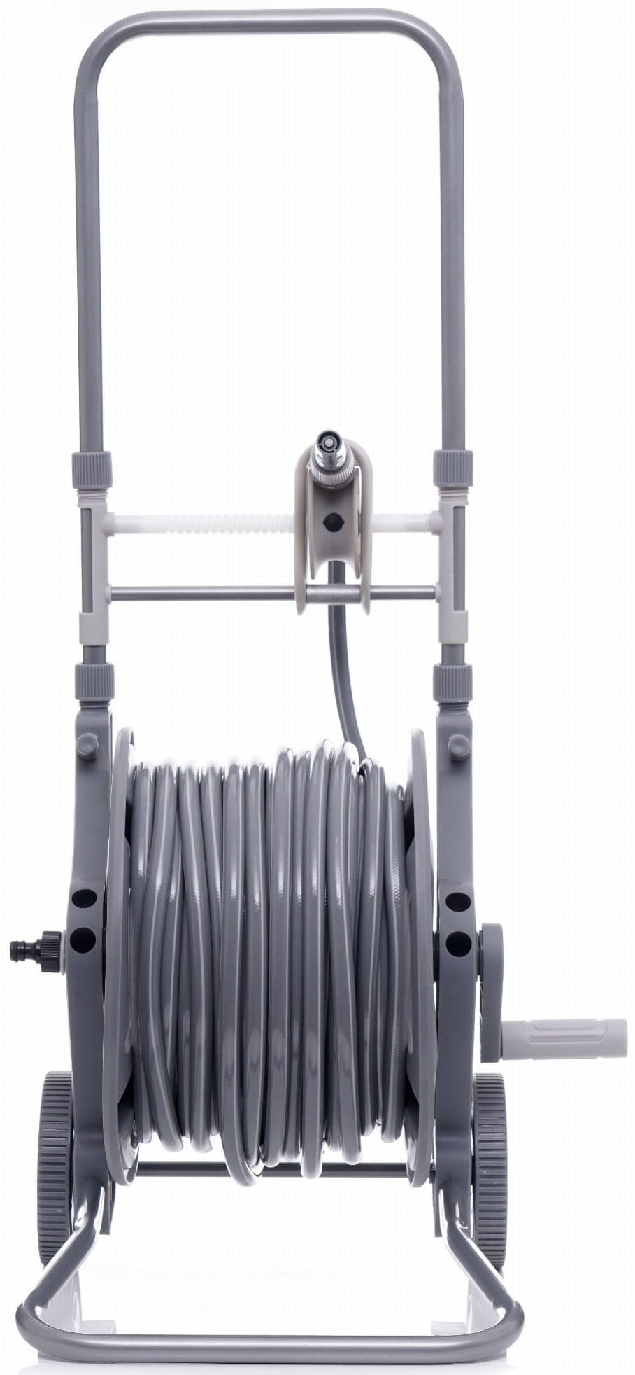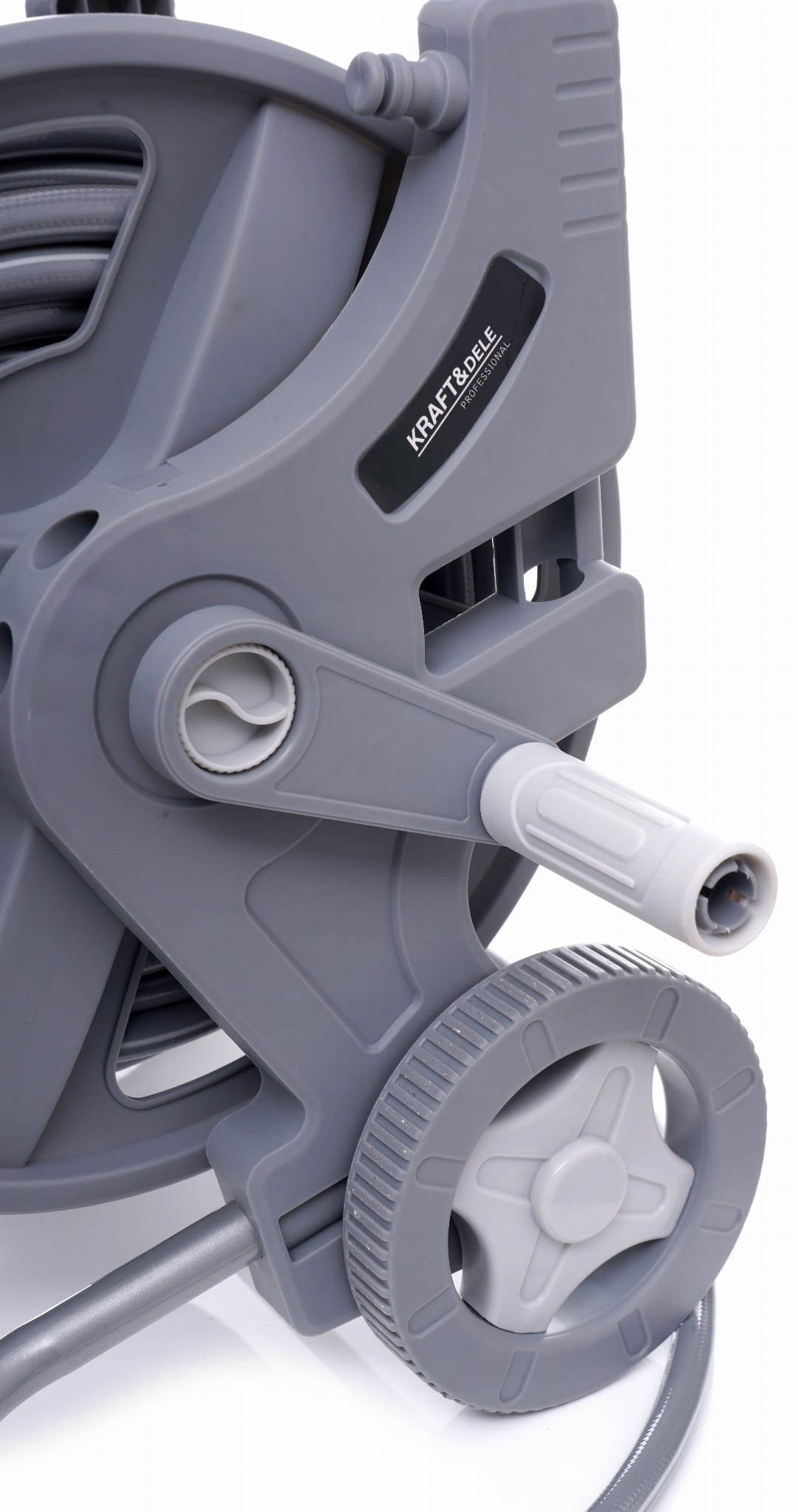 Większa średnica kół zmniejsza opór toczenia na miękkim lub nierównym podłożu (trawa, żwir, kostka brukowa). Wózek można przemieszczać bez konieczności podnoszenia, co ma znaczenie przy pełnym nawinięciu 47 metrów węża.