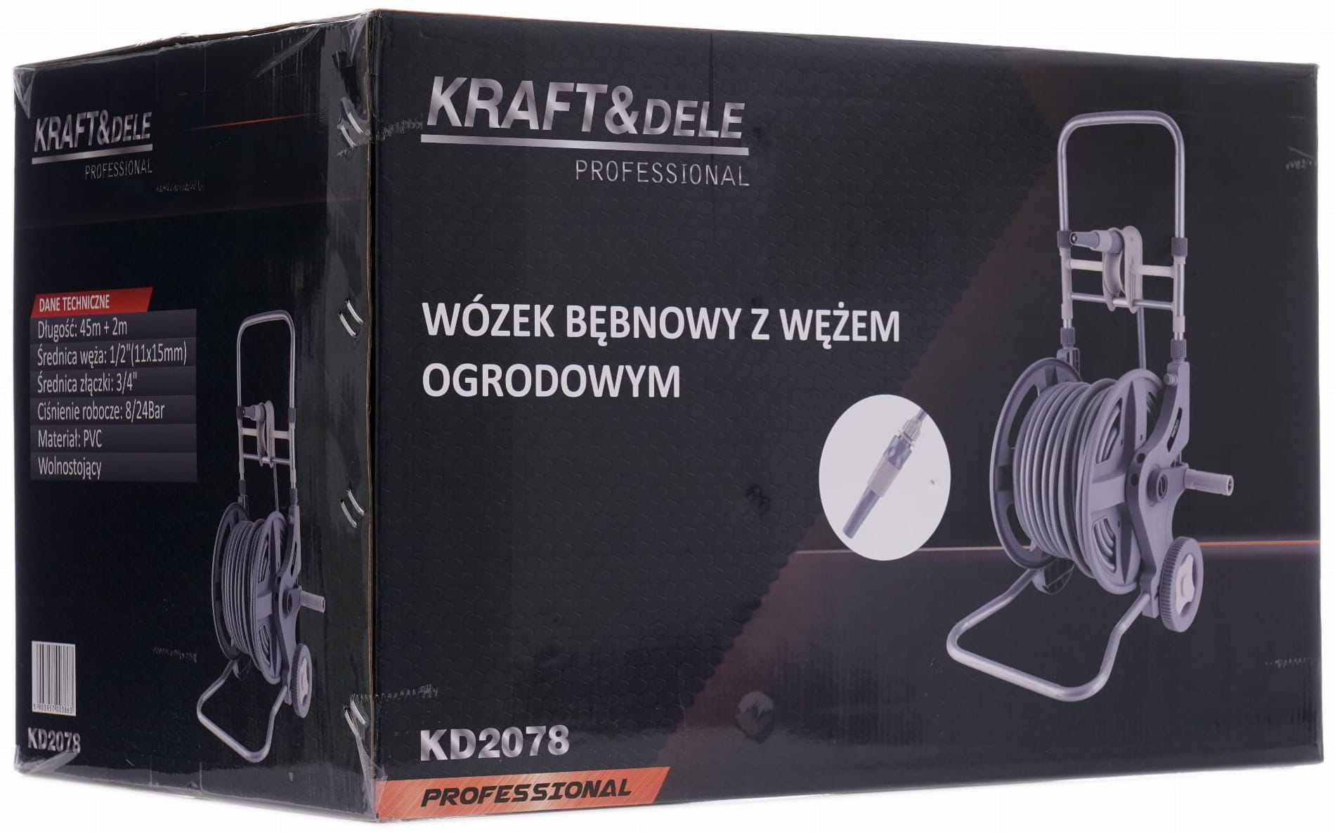 KD2078 to kompletny zestaw do podlewania ogrodu składający się z aluminiowego wózka jezdnego oraz węża ogrodowego o łącznej długości 47 metrów (45 m + 2 m przyłączeniowy). Rozwiązanie przeznaczone do regularnego użytkowania na działkach, w ogrodach przydomowych oraz na terenach zielonych wymagających dużego zasięgu podlewania.