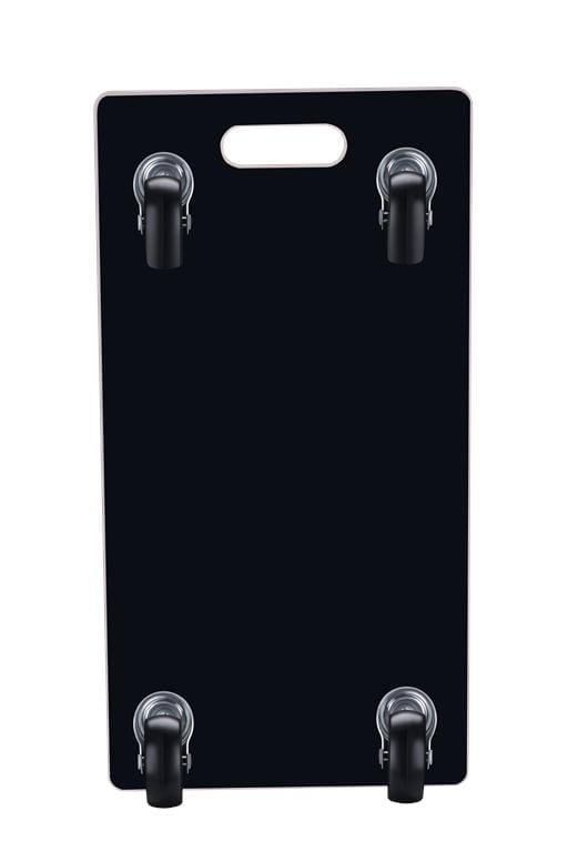 Brak wystającej rączki zmniejsza całkowite gabaryty wózka i ułatwia jego składowanie. Wycięcie w platformie pełni funkcję uchwytu do prowadzenia i pozycjonowania ładunku podczas transportu.