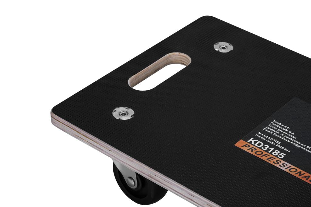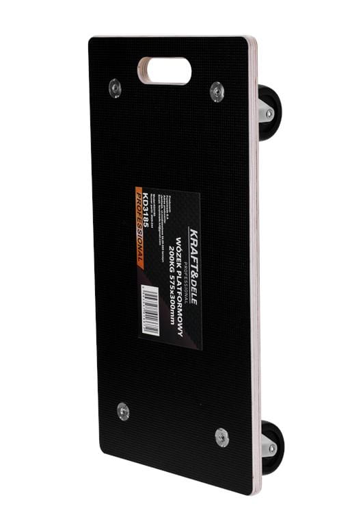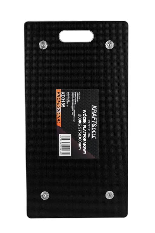 KD3185 to ręczny wózek platformowy o nośności 200 kg, przeznaczony do transportu poziomego ładunków w magazynach, warsztatach i zakładach przemysłowych. Stalowa rama malowana proszkowo i cztery w pełni skrętne kółka gumowe zapewniają trwałość i swobodę manewrowania nawet w ciasnych przestrzeniach.