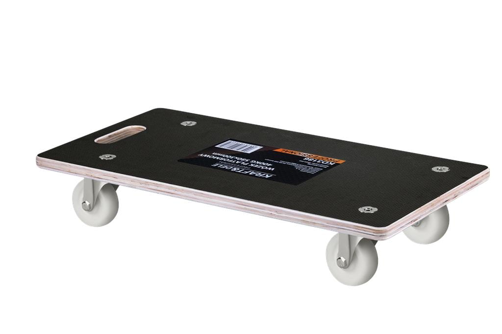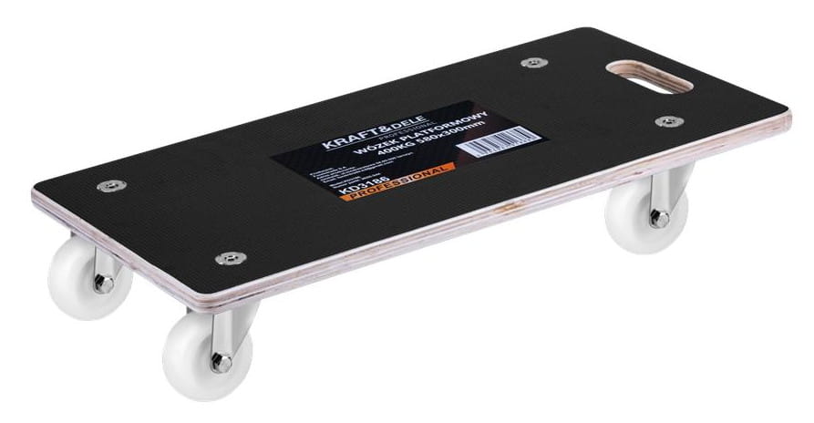KD3186 to ręczny wózek platformowy o kompaktowych wymiarach i udźwigu 400 kg. Stalowa rama malowana proszkowo oraz cztery w pełni skrętne koła gumowe pozwalają na swobodne manewrowanie w ciasnych przestrzeniach magazynowych, warsztatowych i przemysłowych. Masa własna wynosząca około 3,6 kg sprawia, że wózek jest łatwy w przenoszeniu i codziennej obsłudze.