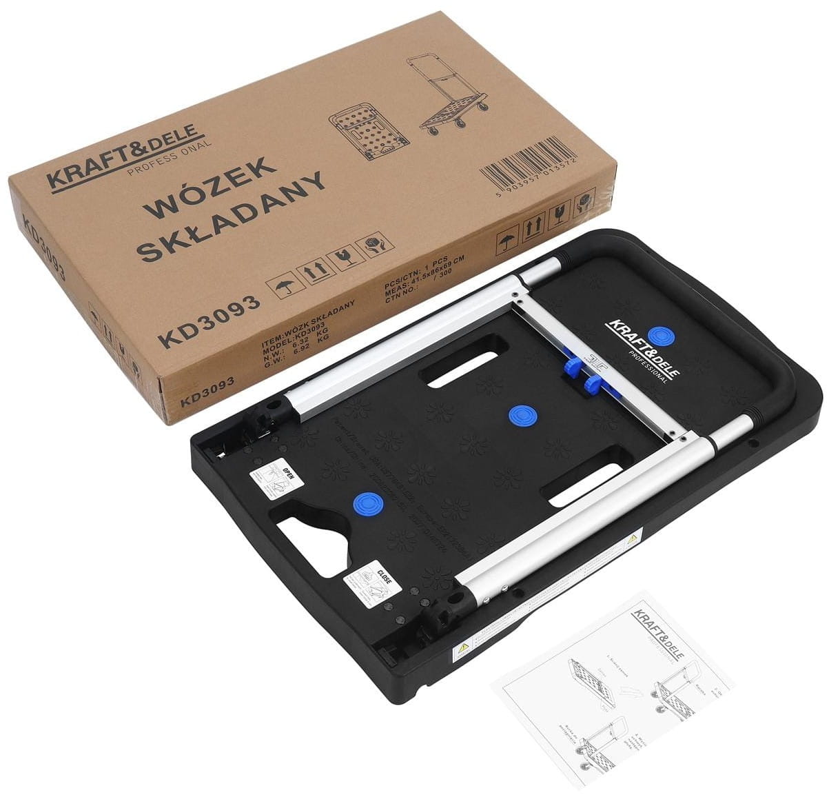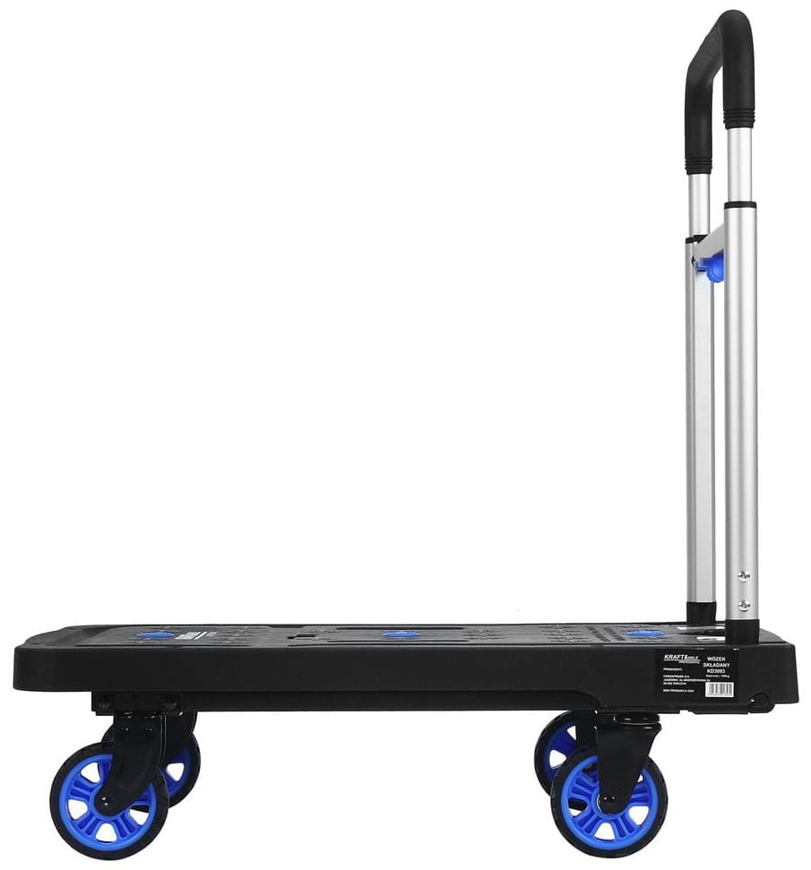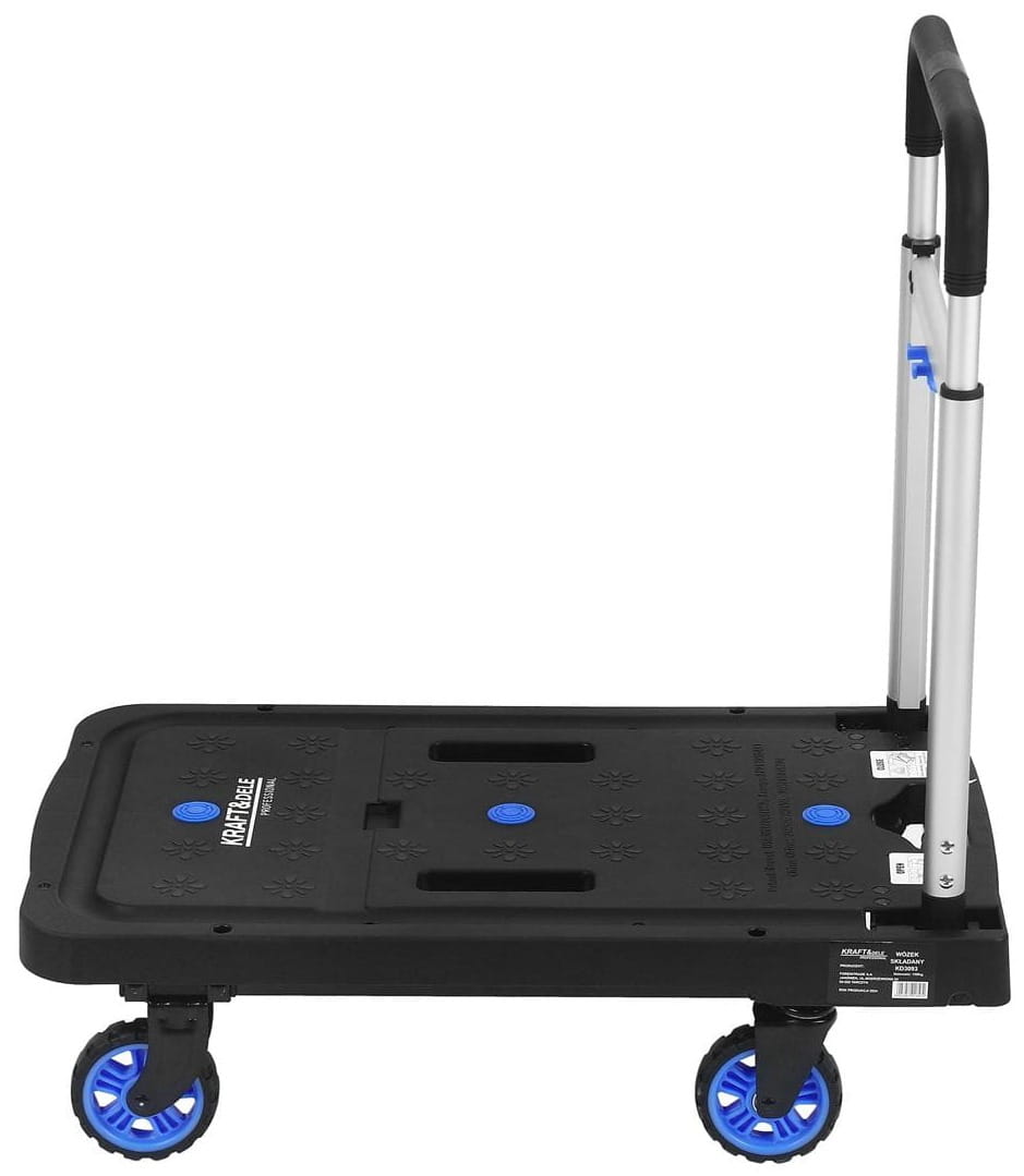 KD3093 to składany wózek platformowy przeznaczony do transportu ciężkich i nieporęcznych ładunków w środowiskach magazynowych, warsztatowych oraz w zastosowaniach domowych. Konstrukcja z regulowaną, składaną rączką pozwala na kompaktowe przechowywanie urządzenia po zakończeniu pracy.