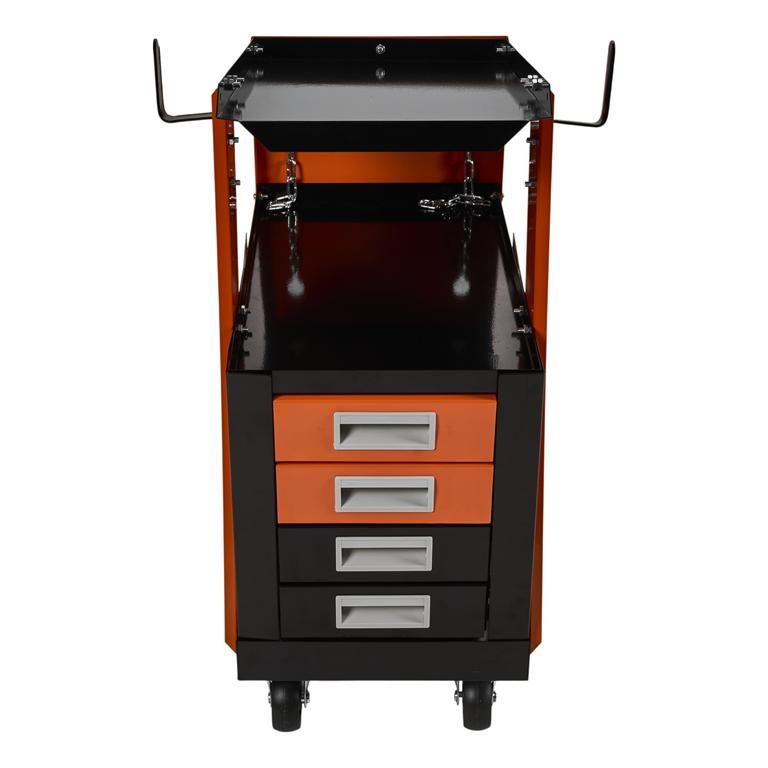 Cztery szuflady w modelu KD374 porządkują akcesoria i narzędzia, co skraca przygotowanie do pracy i usprawnia obsługę zleceń.