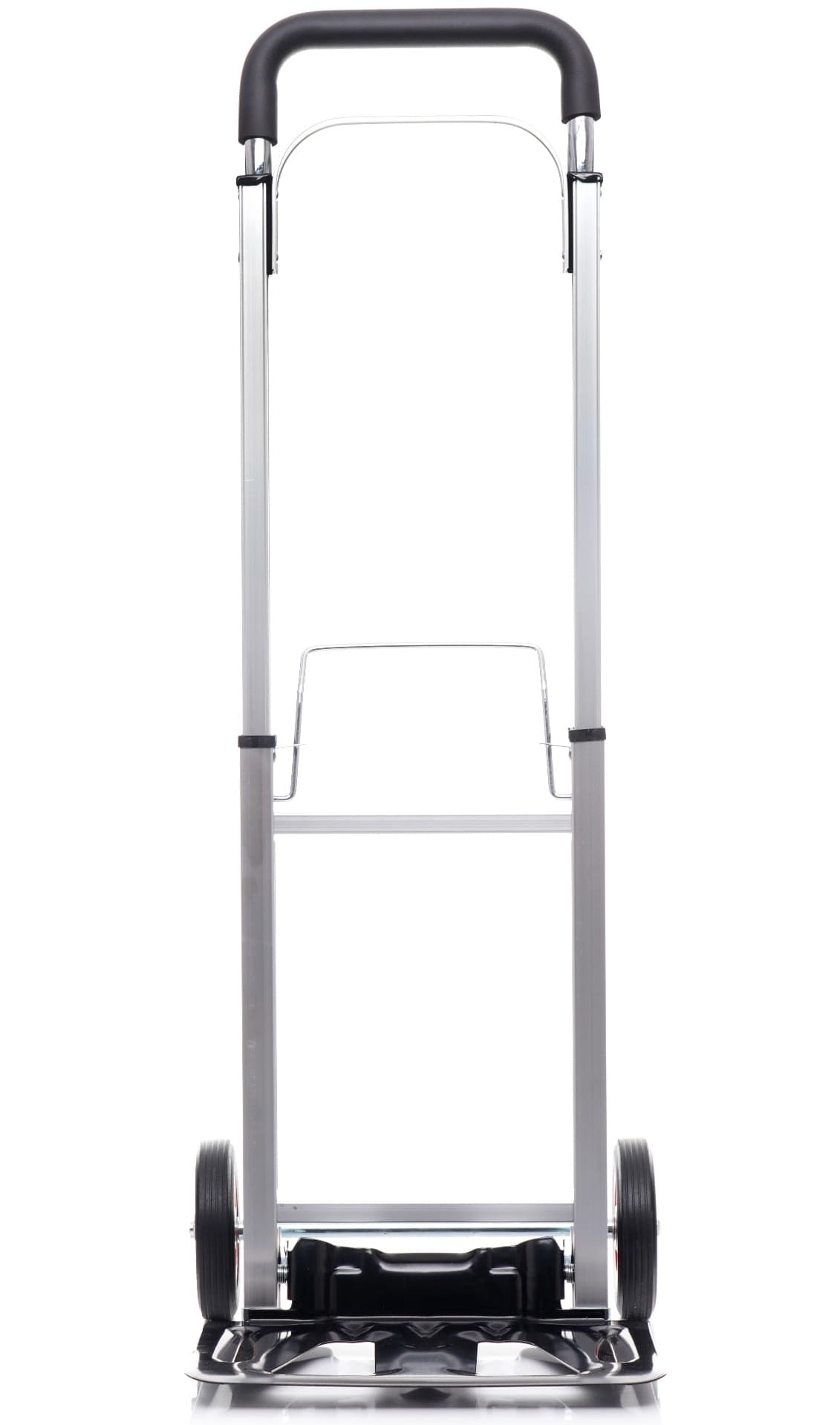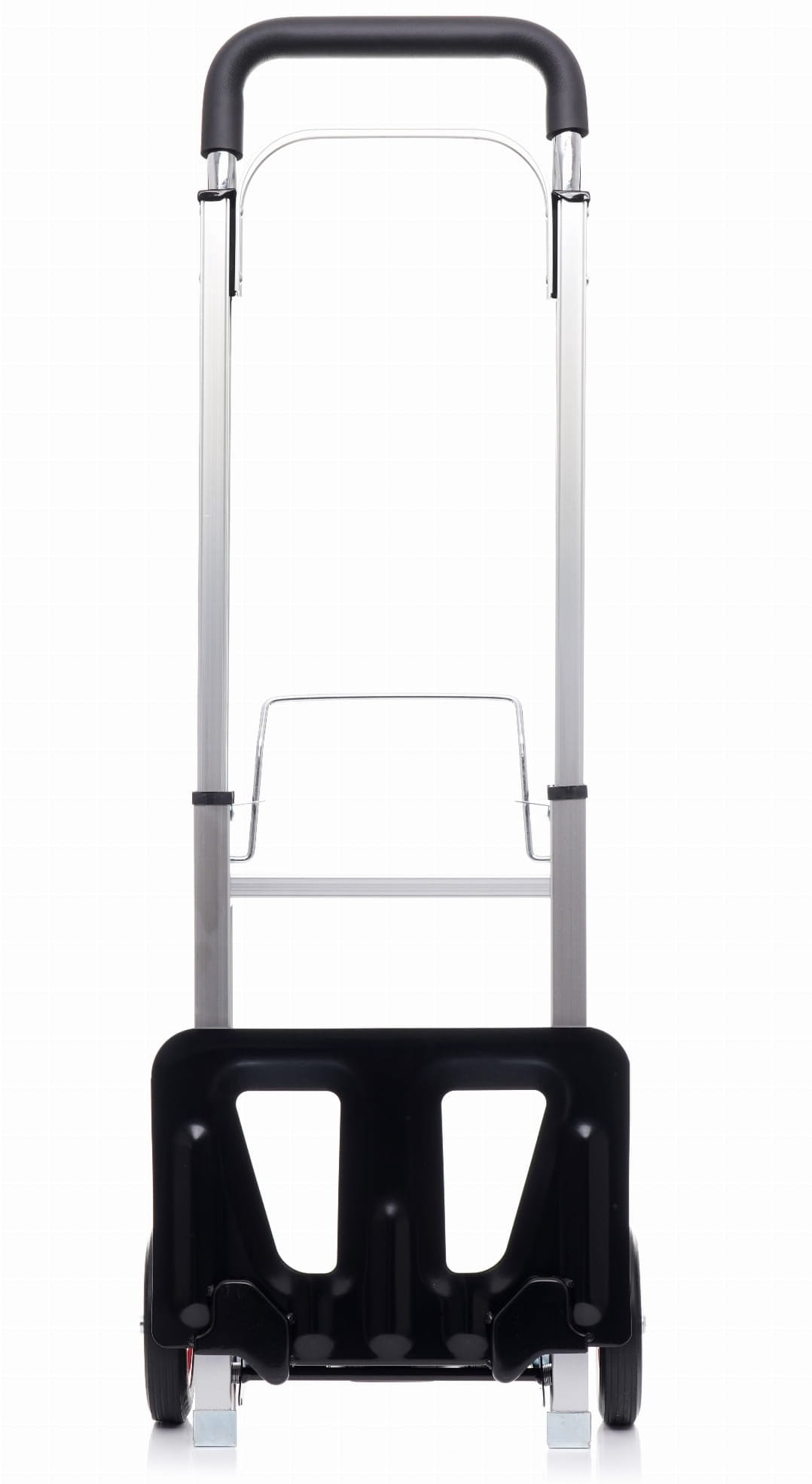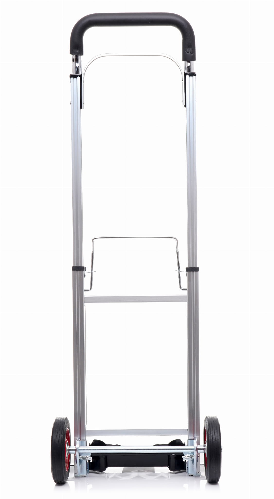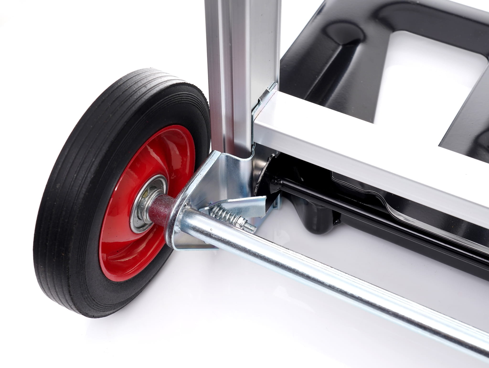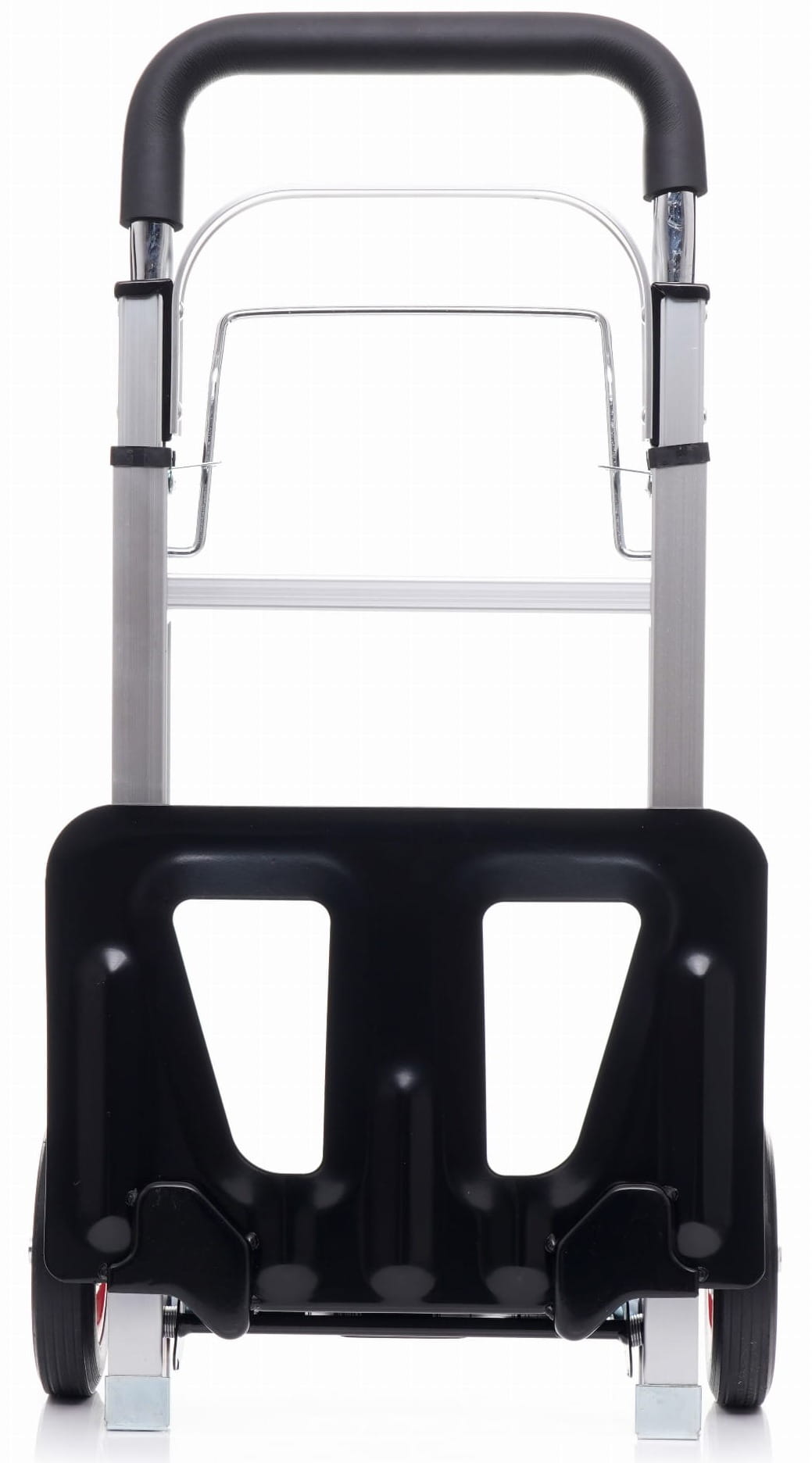 Platforma ładunkowa o wymiarach 24 × 36 cm jest wzmocniona dodatkowymi podporami, które zwiększają jej sztywność pod obciążeniem. Ergonomiczny uchwyt z gumowaną rękojeścią poprawia pewność chwytu przy prowadzeniu wózka.