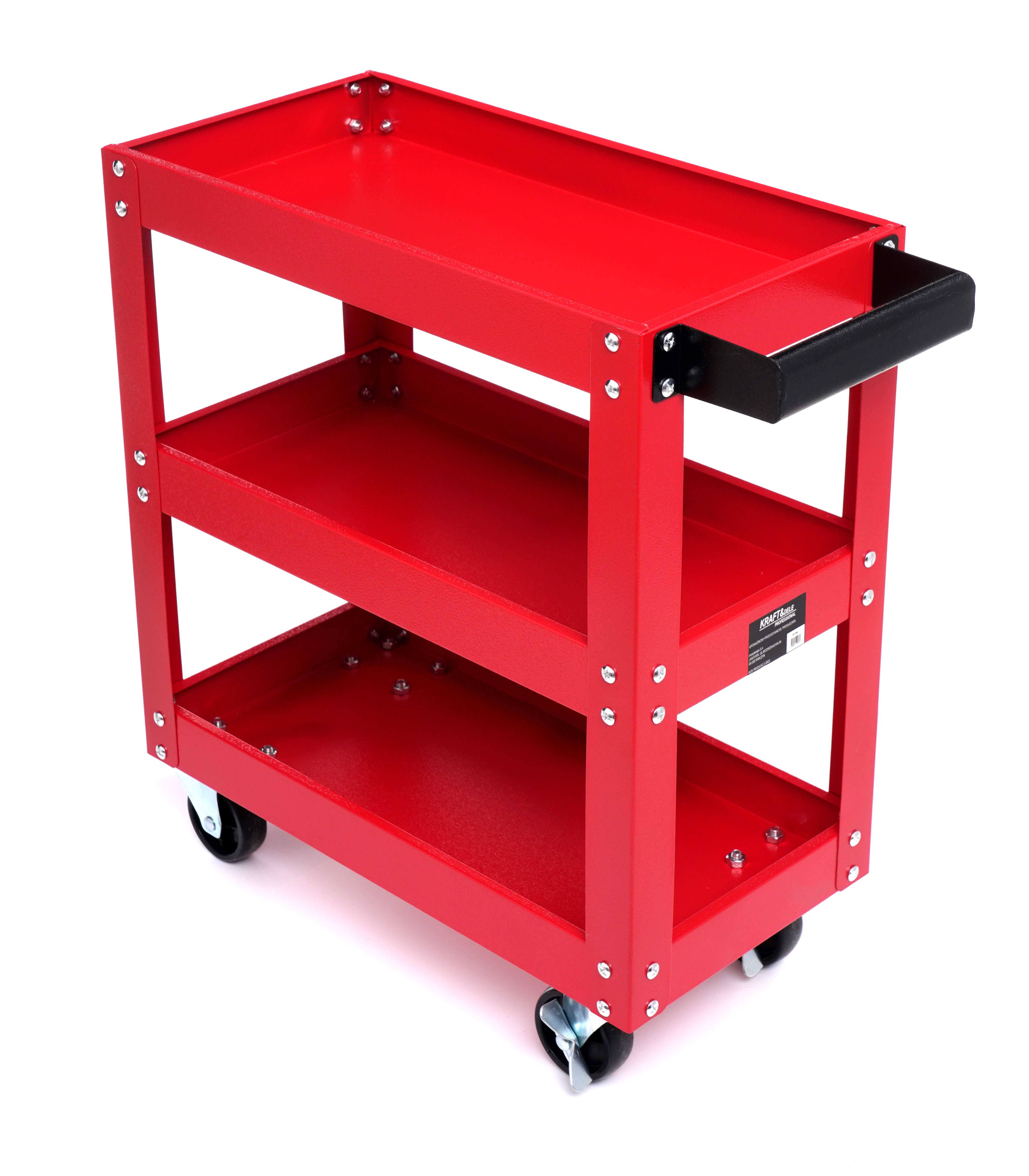 Wózek warsztatowy 510 x 260 x 580mm KD1065 / KD1065 / KRAFT&DELE ułatwia przechowywanie narzędzi i transport niedużych gabarytów w warsztacie, serwisie oraz garażu. Trzy półki pozwalają utrzymać porządek, a konstrukcja stalowa sprawdza się w codziennym, intensywnym użytkowaniu.