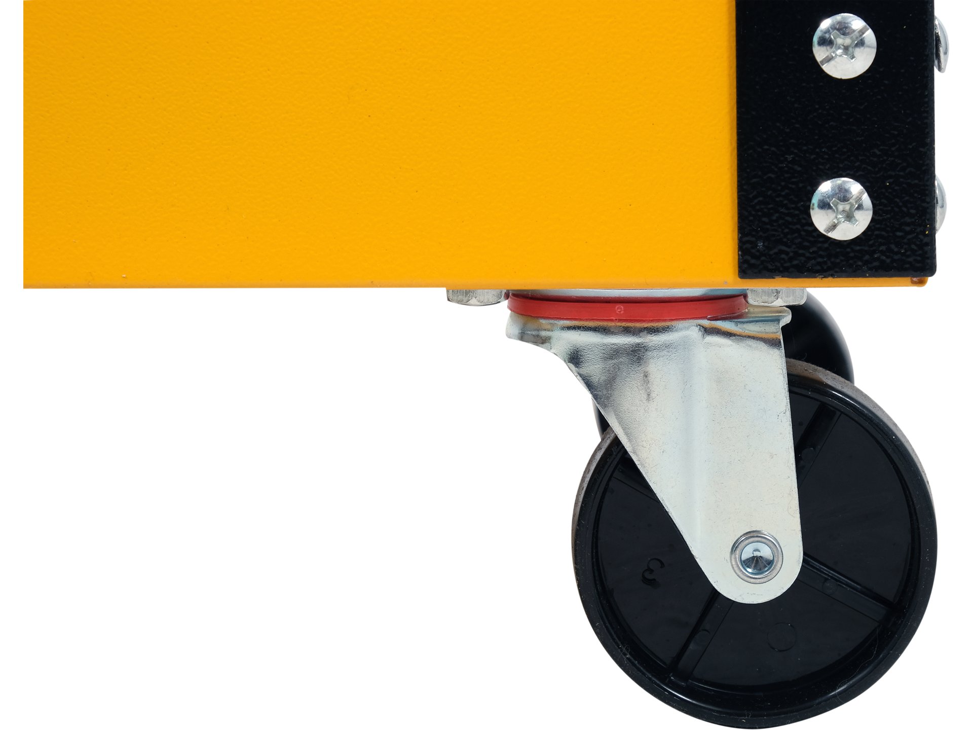 Malowanie proszkowe zapewnia odporność na zarysowania, uderzenia oraz działanie olejów i rozpuszczalników używanych w warsztacie. Powłoka zabezpiecza stal przed korozją, wydłużając żywotność wózka w warunkach intensywnej eksploatacji.