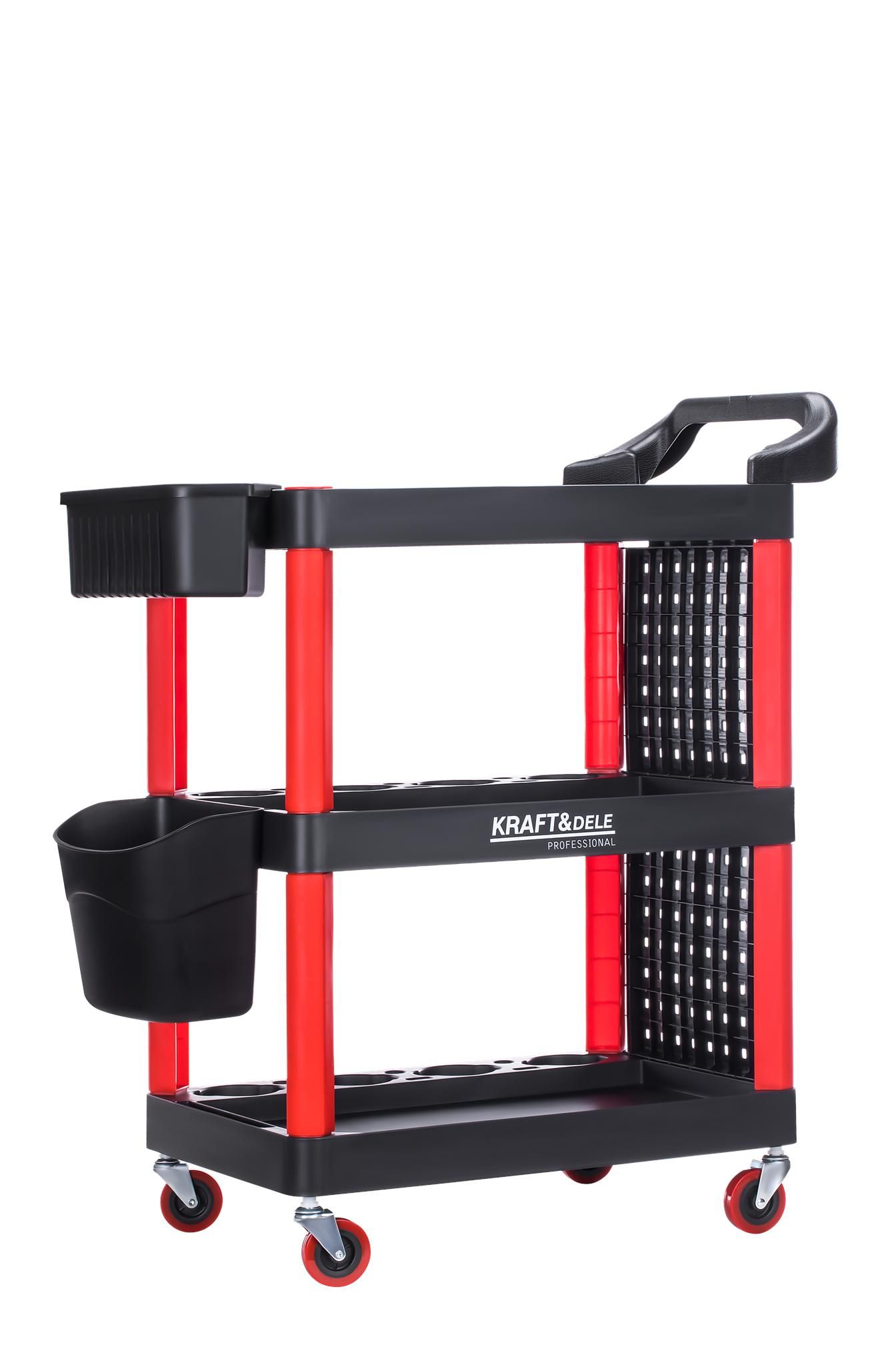 Wózek wielofunkcyjny Kraft&Dele KD1076 dobrze odnajduje się wszędzie tam, gdzie narzędzia i chemia muszą być pod ręką, a stanowisko pracy zmienia się w trakcie zlecenia. To wygodny wózek warsztatowy do codziennego użytku w przestrzeniach profesjonalnych i domowych.